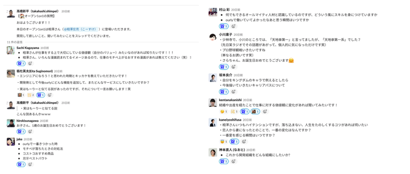 オープン1on1前にはメンバーから沢山の質問が集まります。