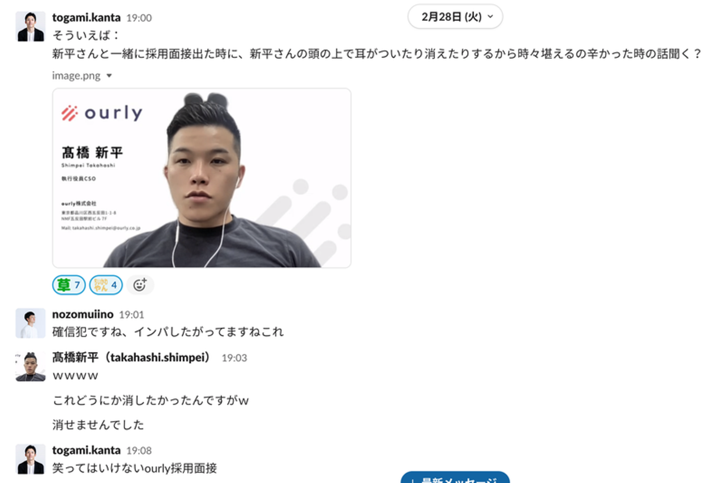 社内チャット(slack)で面接中のスクショを撮られ全社にさらされています。しかもこの画像をツイートしたら死ぬほど伸びましたw