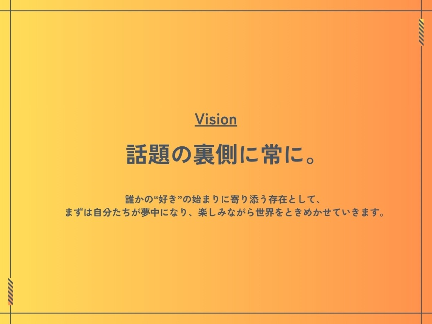 私たちのVisionは、「話題の裏側に常に」。