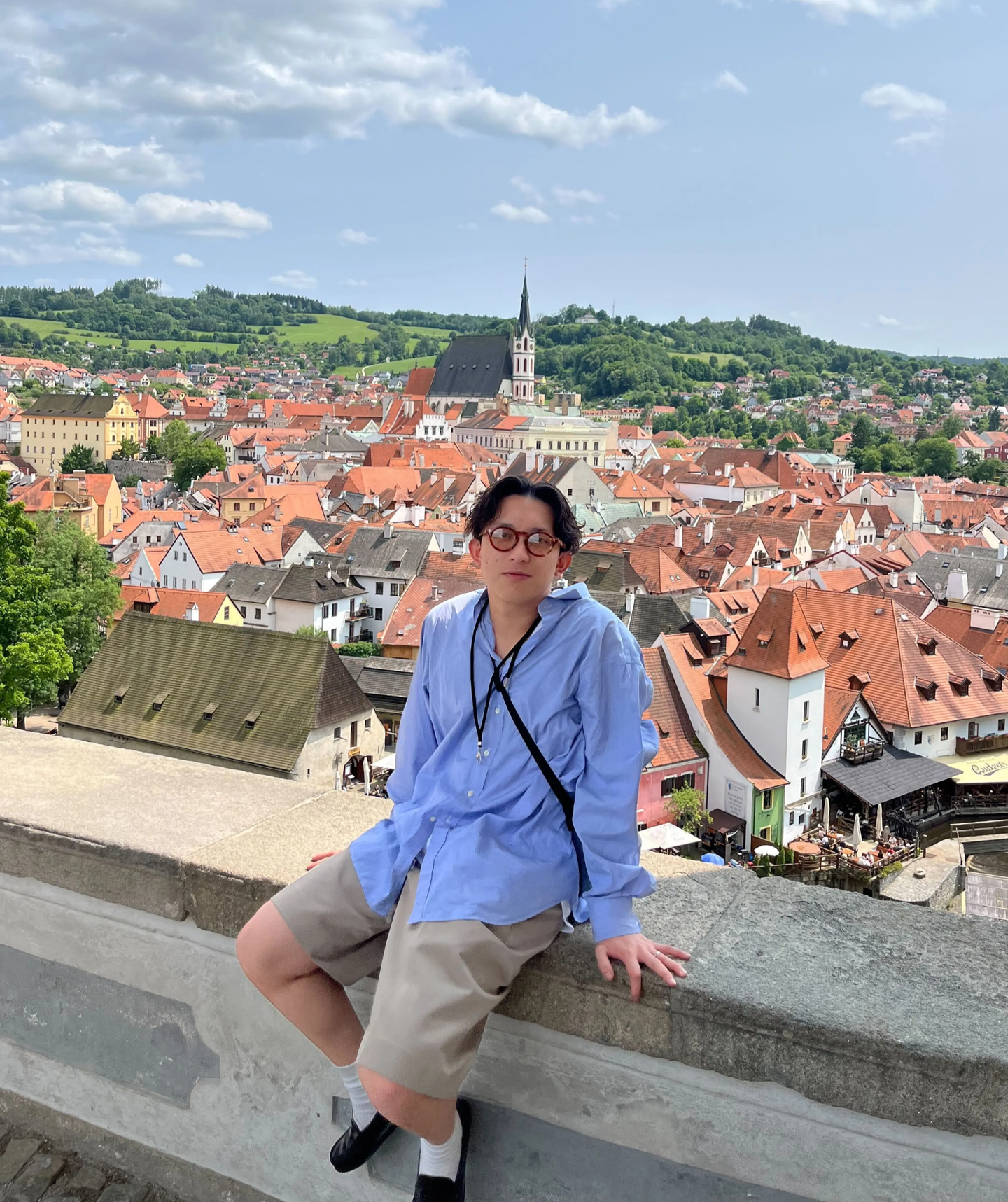 🔼 ヨーロッパの街並みを背景にカッコよく映る谷後さん。