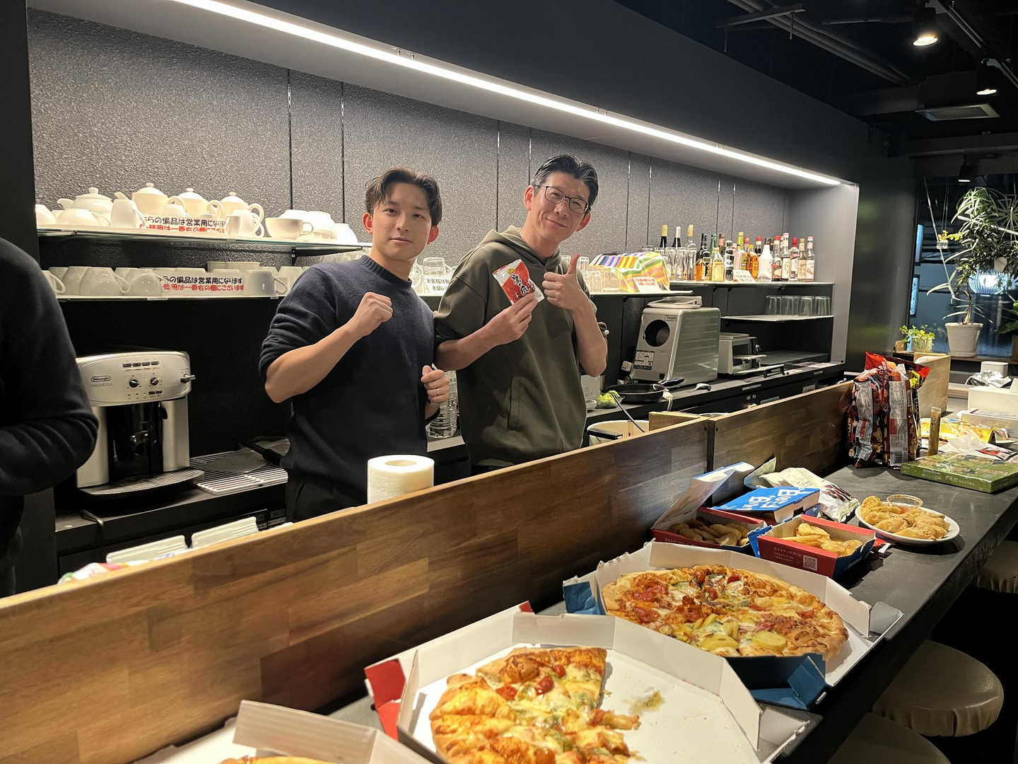 🔼 去年の忘年会にて、大谷さんと決めポーズをとる谷後さん。