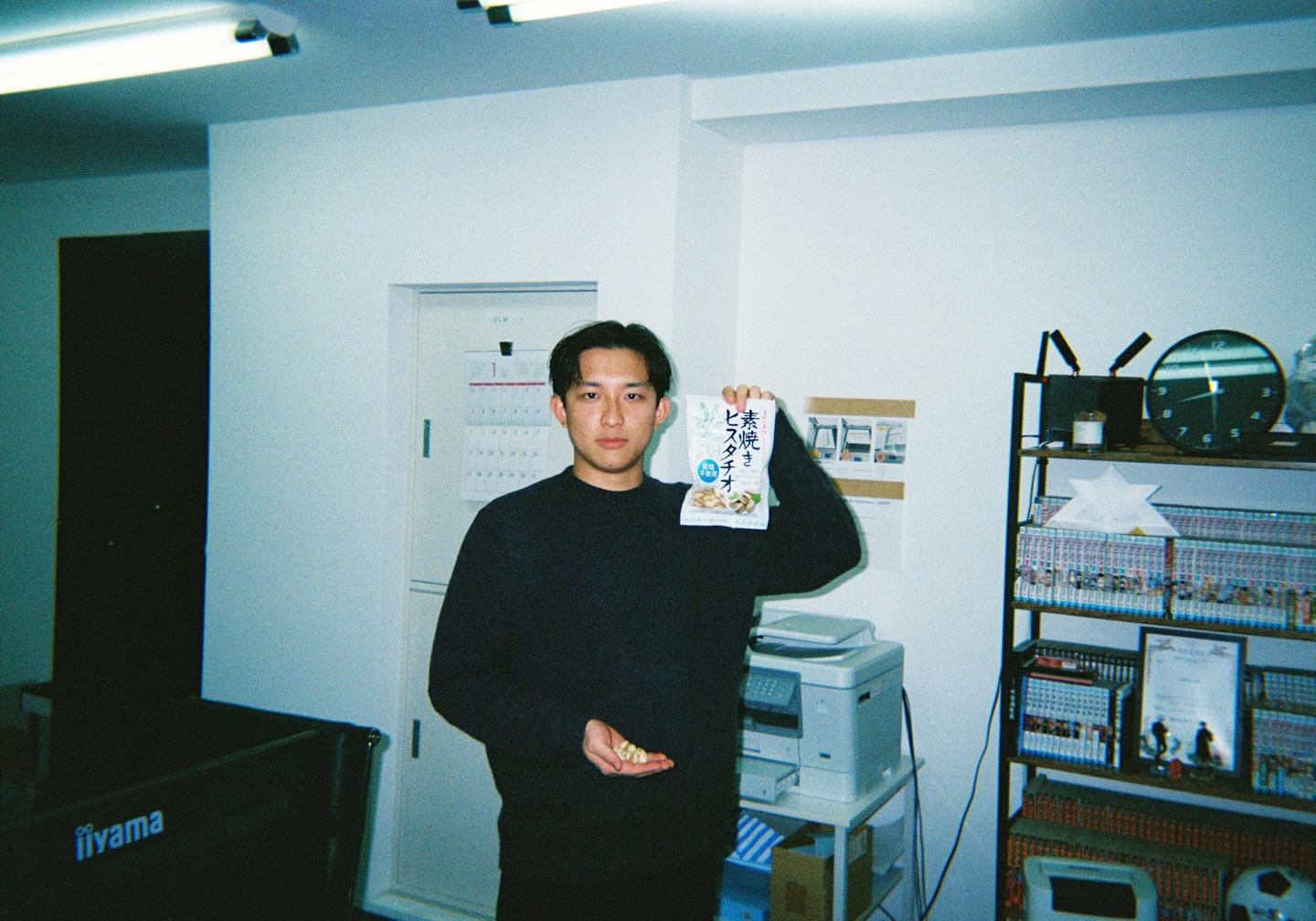 🔼 ピスタチオを掲げる谷後さん。