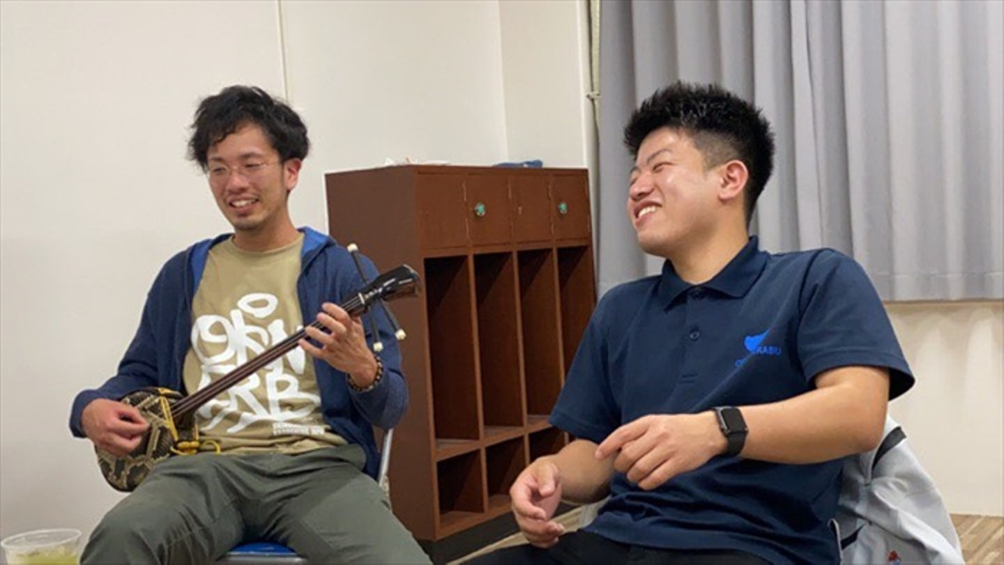 趣味は民謡と三味線です。沖永良部島ではライブに出たり、民謡教室を開催したりしています。