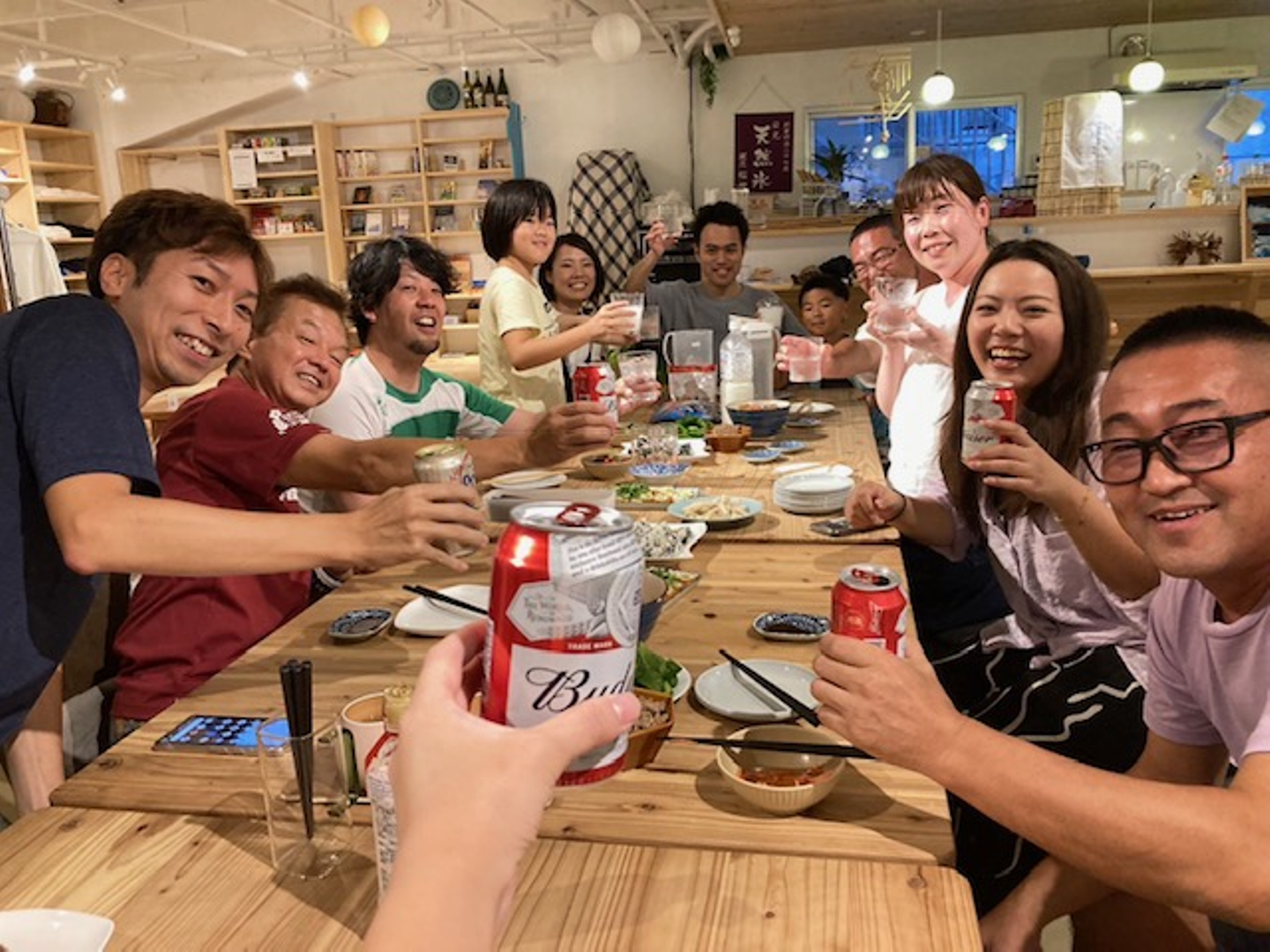 IVCは社員旅行と社員研修を兼ねて、毎年1回どこかの離島に社員全員が集まろう!という社内行事。会社設立3年目の2021年にスタートしています。毎回、最終日の夜は島の人と交流しながら宴会を開きます。