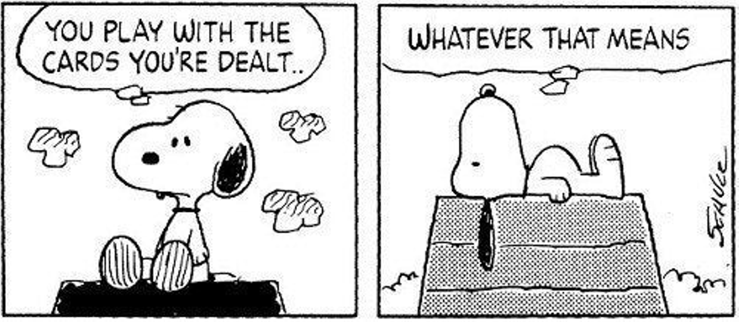 "You play with the cards you're dealt...whatever that means" - Charles M. Schulz, PEANUTS © 1950 PEANUTS Worldwide LLC