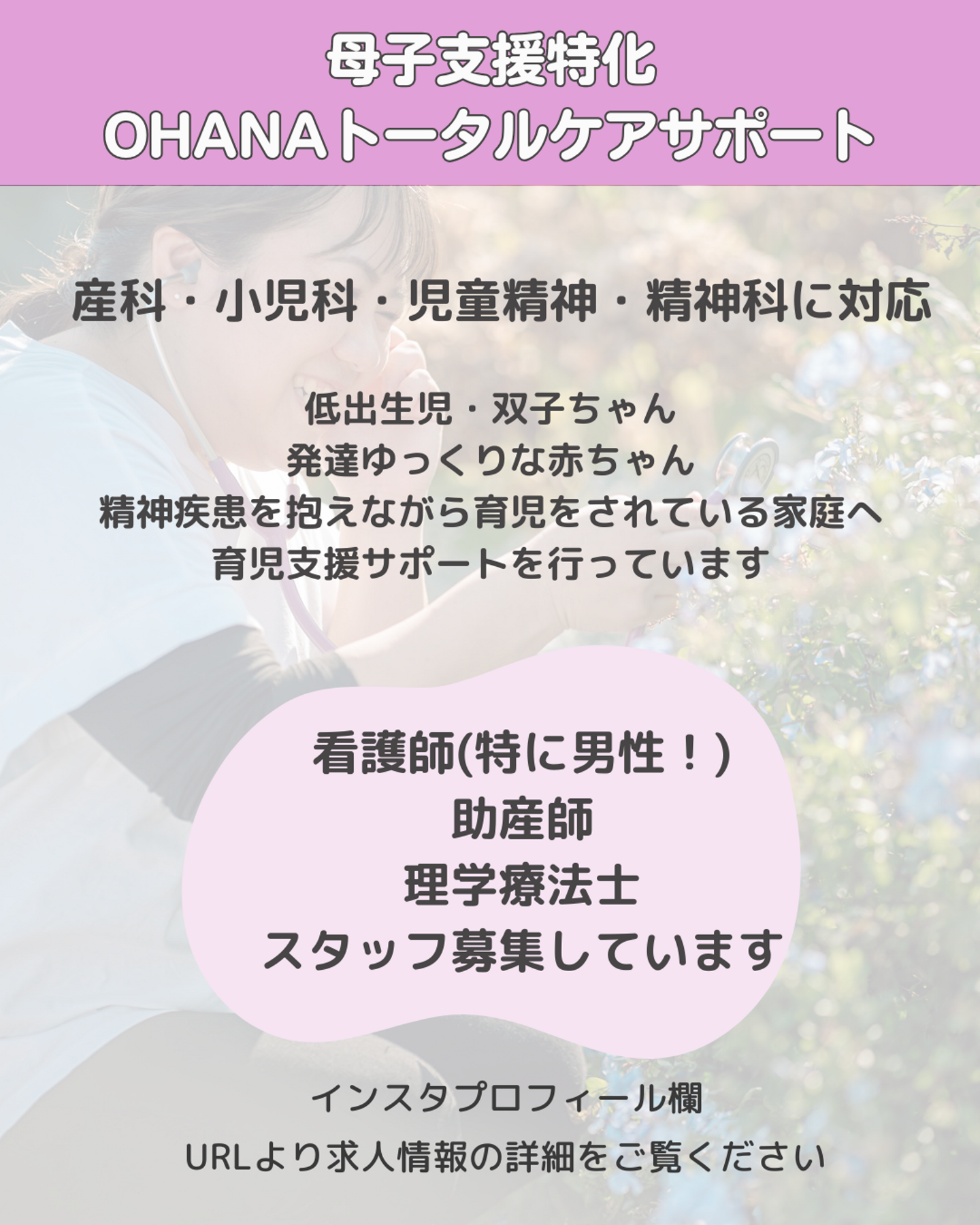 産科・小児科・児童精神科・精神科に対応した訪問看護という医療サービスを提供しています
