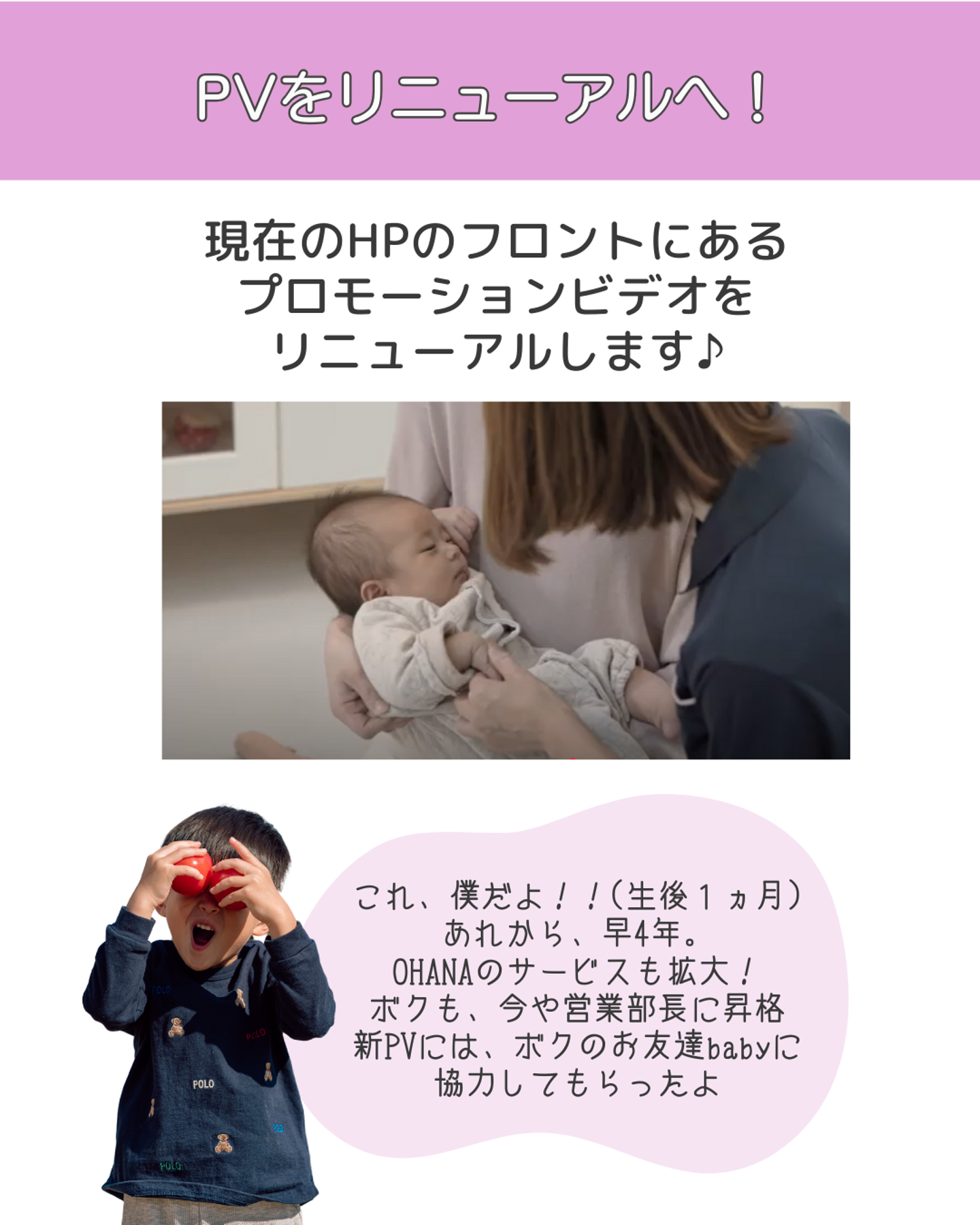 OHANAのHPのフロントには、法人化1年目の時に作成したPVが掲載されています。