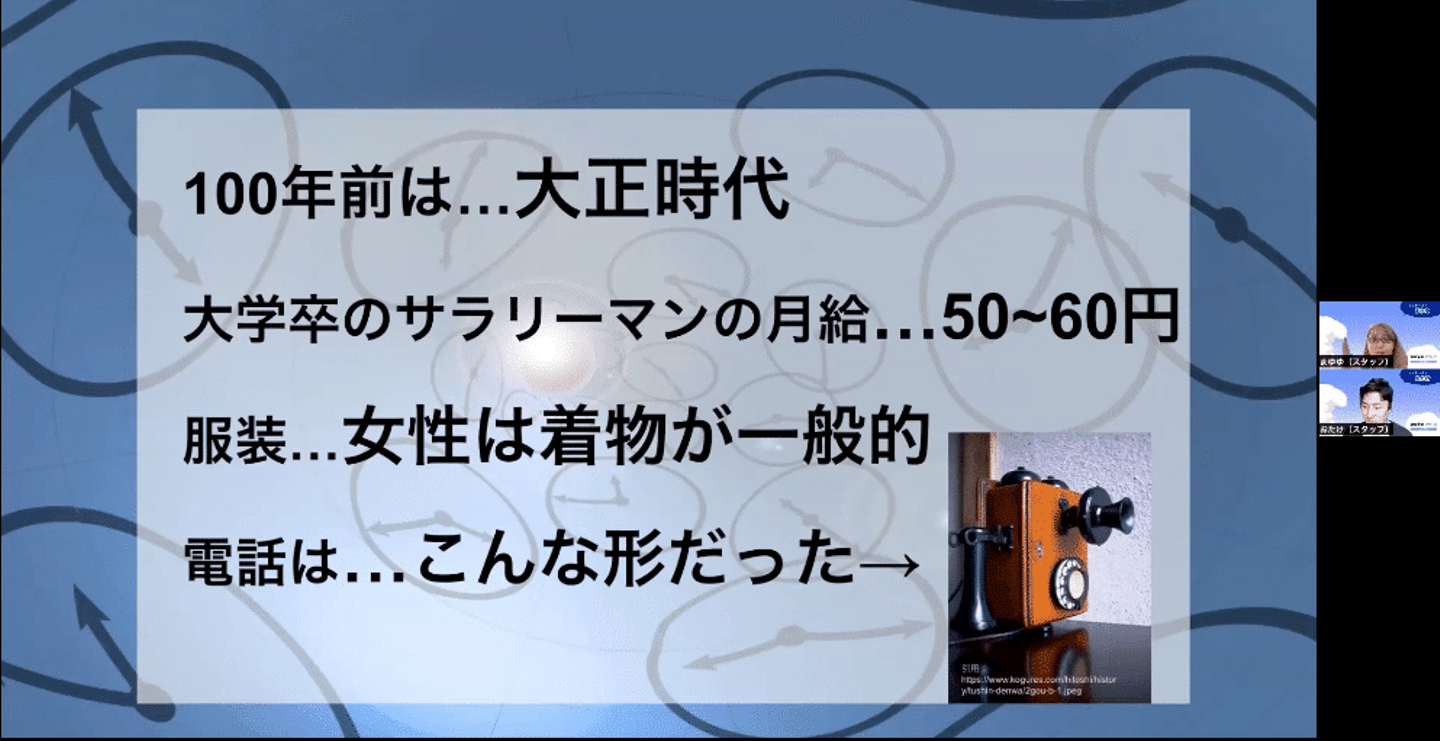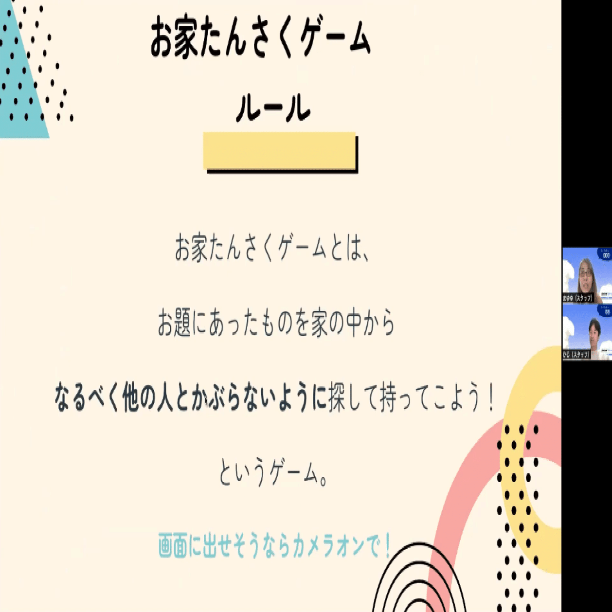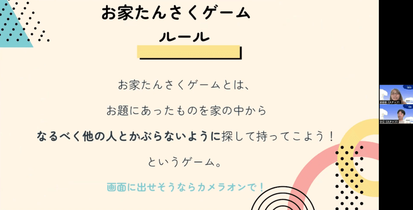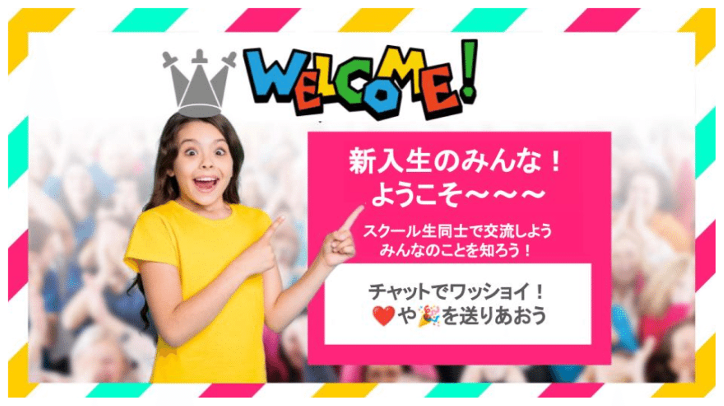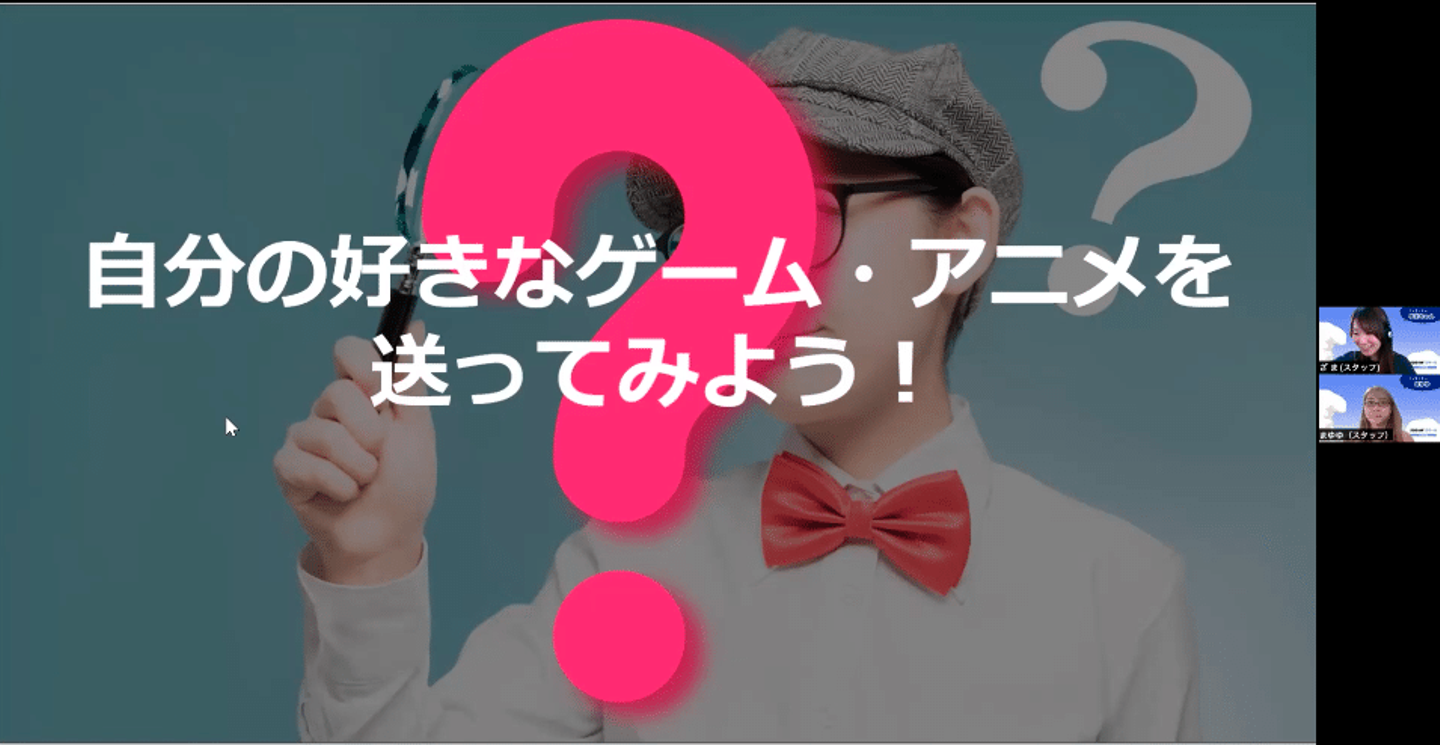 はじめてのオンラインスクールに緊張やドキドキもあると思うので、まずはスタッフ一同で明るくあたたかく迎え入れ。