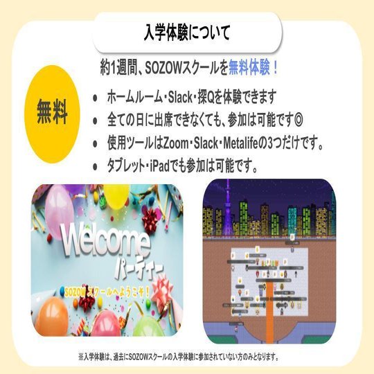 SOZOWスクールでは、【約1週間の無料入学体験】を実施しています。