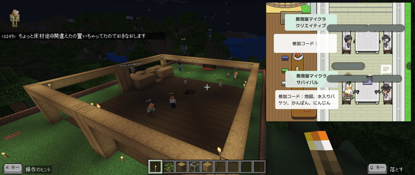 こちらのテーブルでは、教育版マイクラのクリエイティブモードで