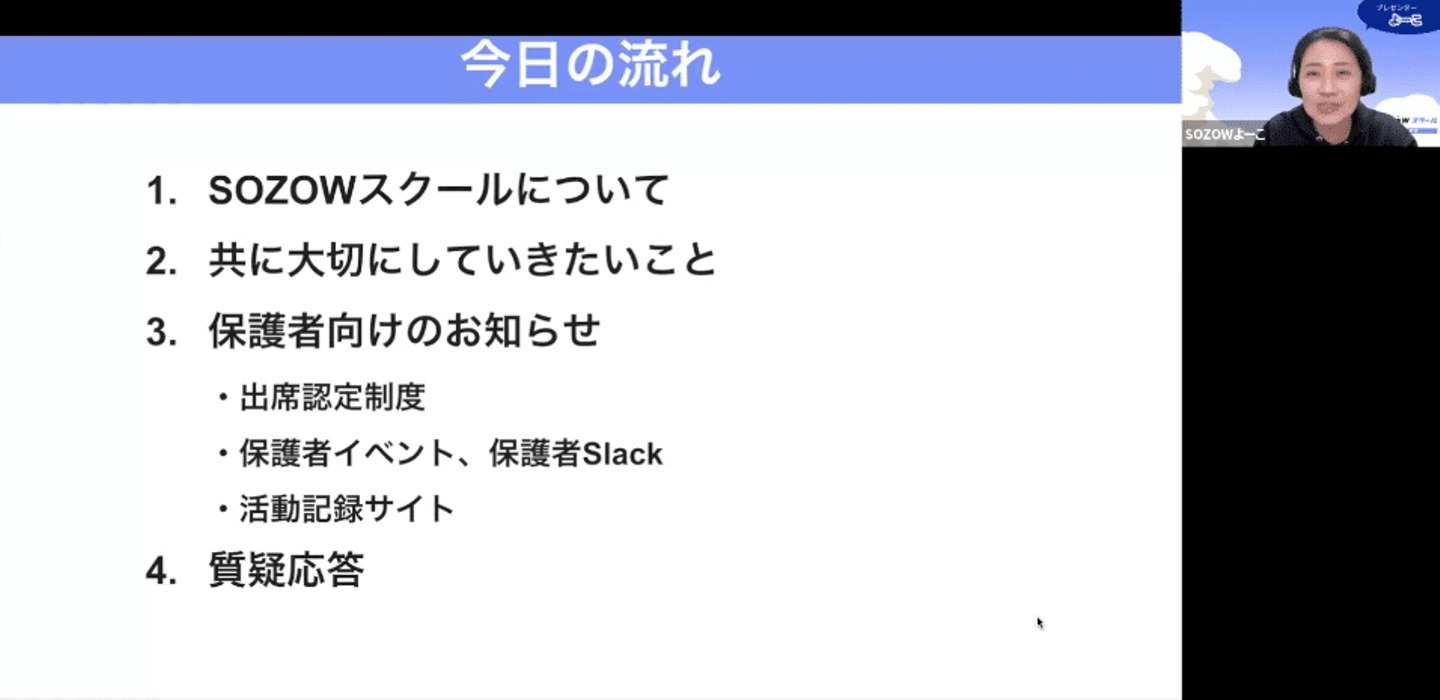 保護者へのサポート体制も改めて説明していきます。
