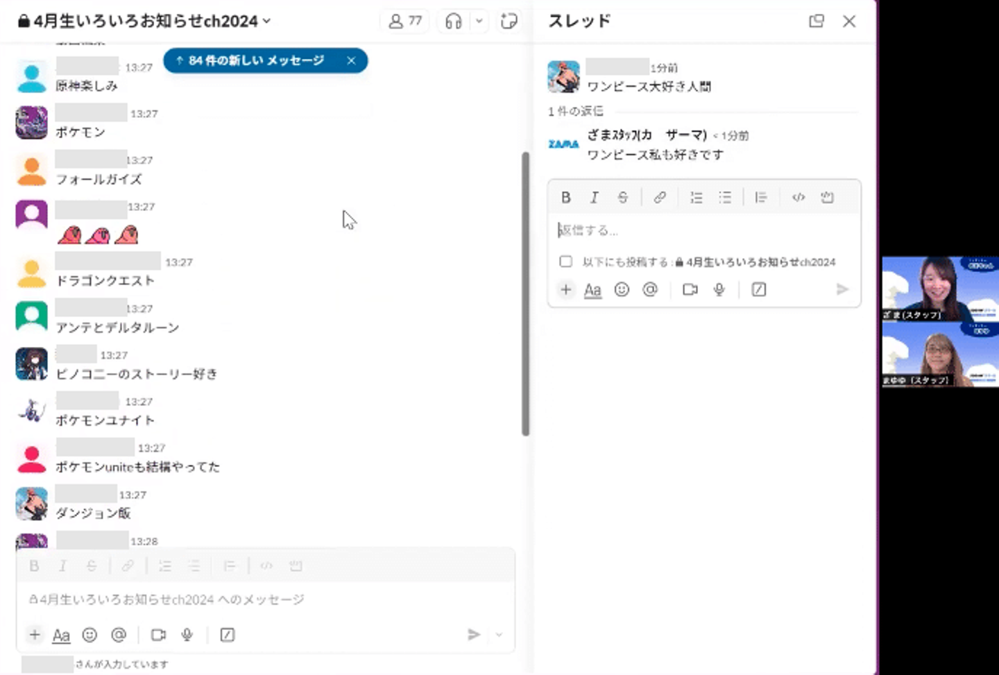 60名以上が一斉にログインすると、とっても賑やか😳