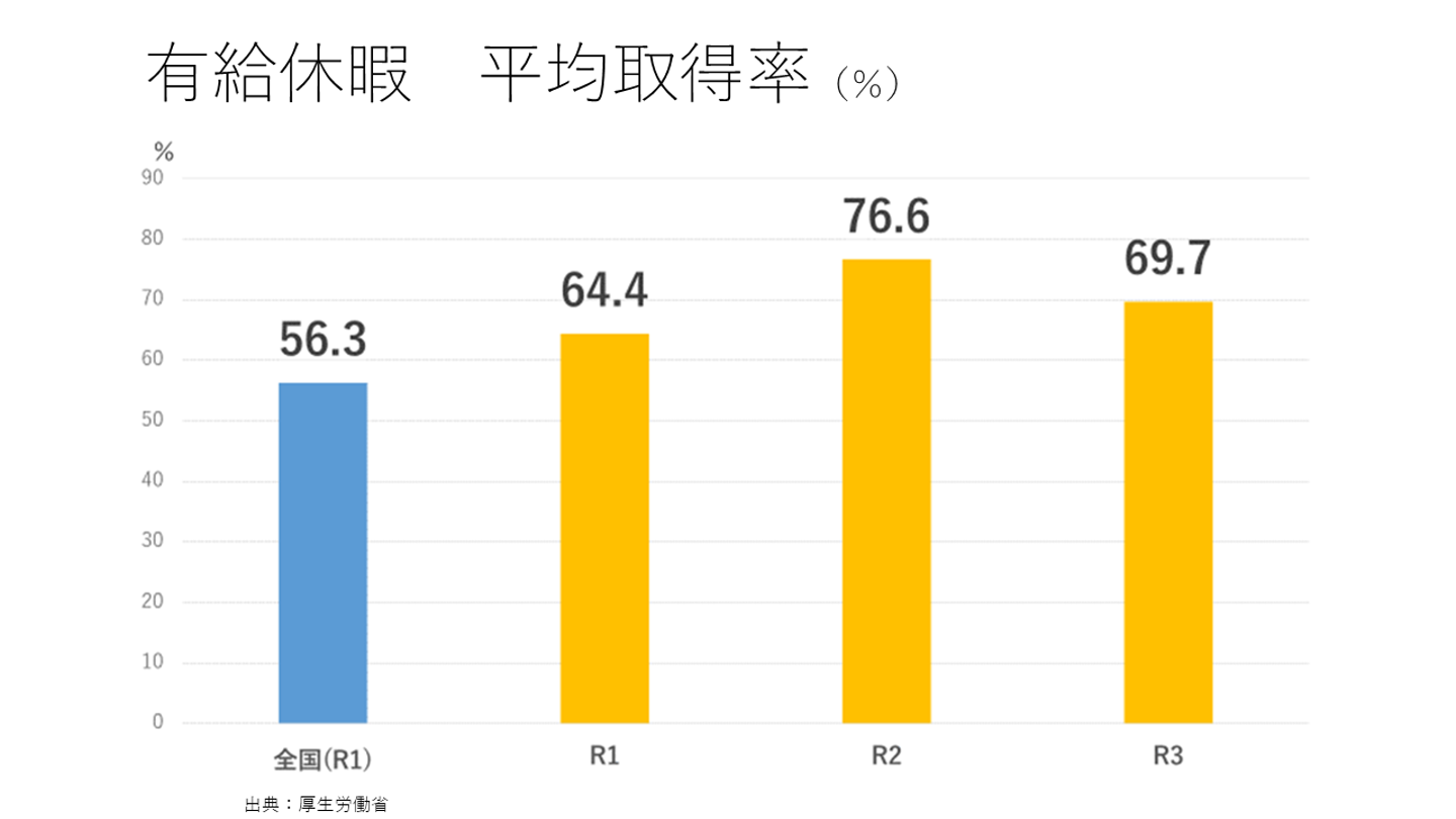 実は当グループは、すでに全国平均と比べて高い取得率をキープしています。