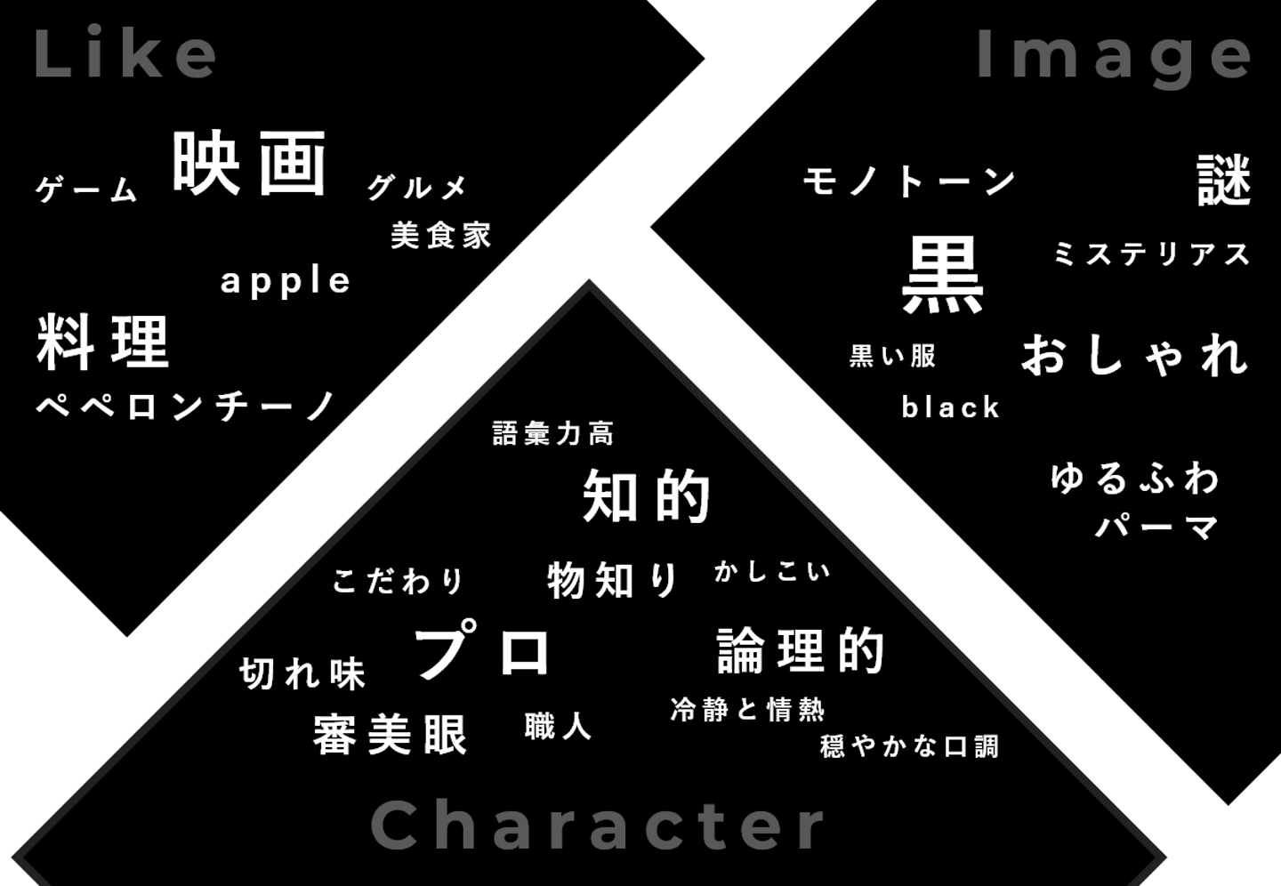 集まった単語をカテゴリ分けしたら、これだけでも雰囲気が伝わる気がしますね~。