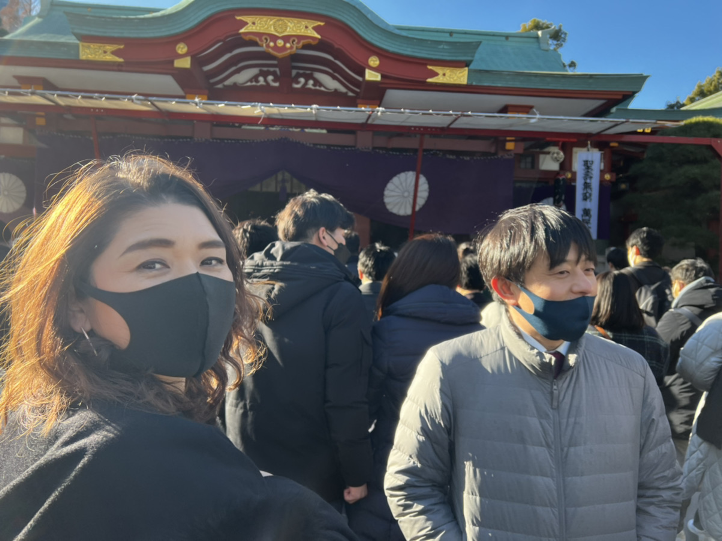 2022年1月4日、ココエ社員有志で会社近くの日枝神社にて初詣に行ってきました。もちろん祈願するのは商売繁盛!