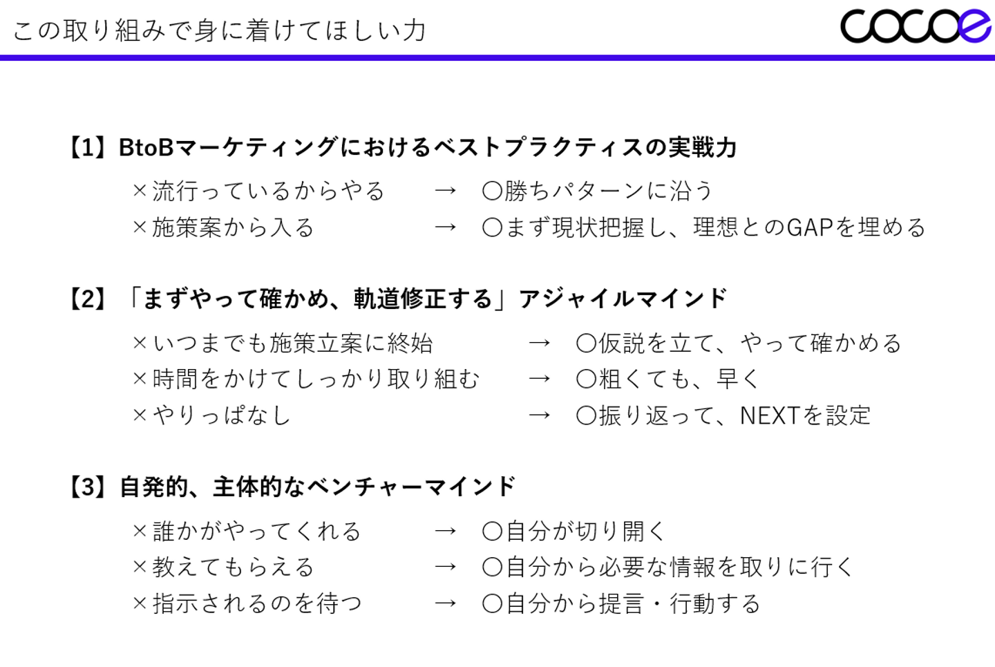今回よりおよそ3カ月間、他メンバーと交代でココエの社内セミナー「マーケティングDXブートキャンプ」について、レポを連載していきます。