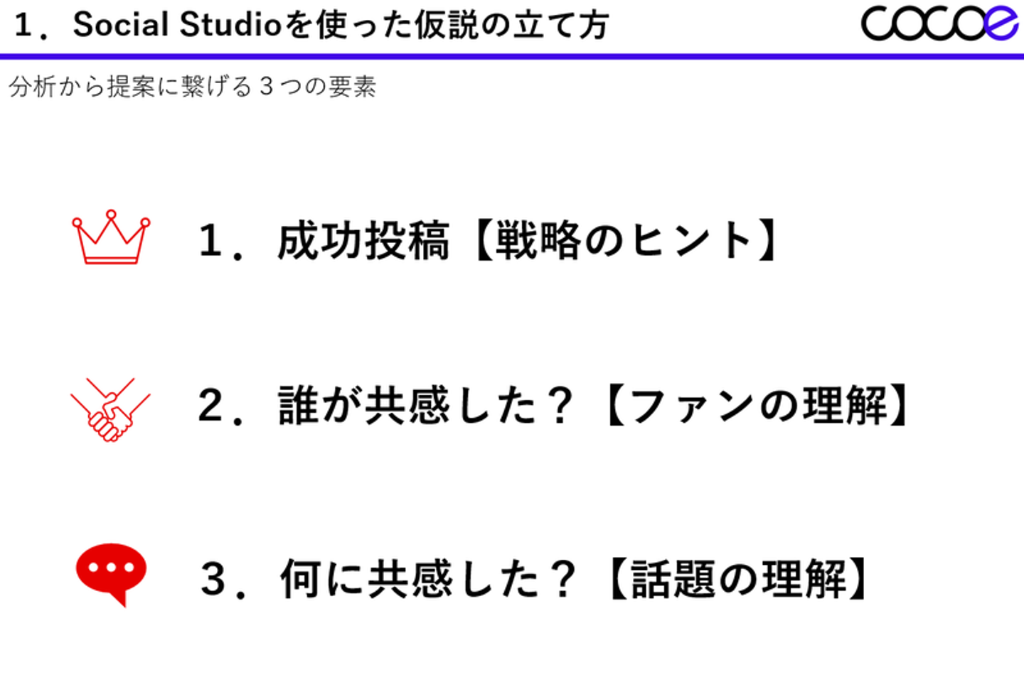 社内勉強会では、3つのポイントを基にSocial Studioを使って実践。