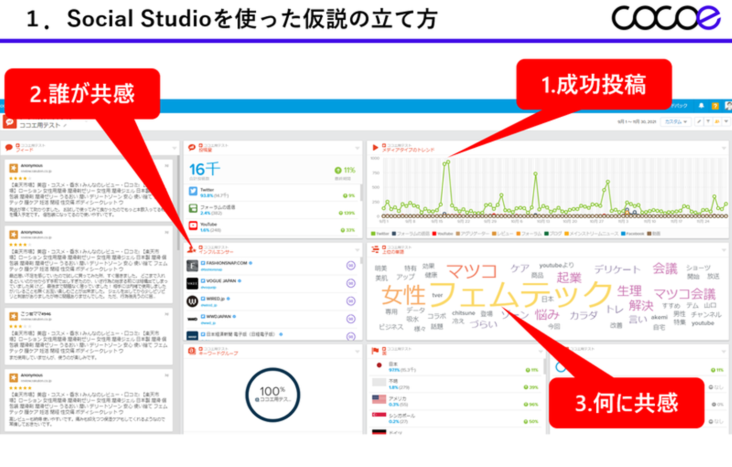 セミナーではSocial Studioを使ってさまざまなキーワード、商品、業界を分析しましたが今回ブログで紹介するのは「フェムテック」