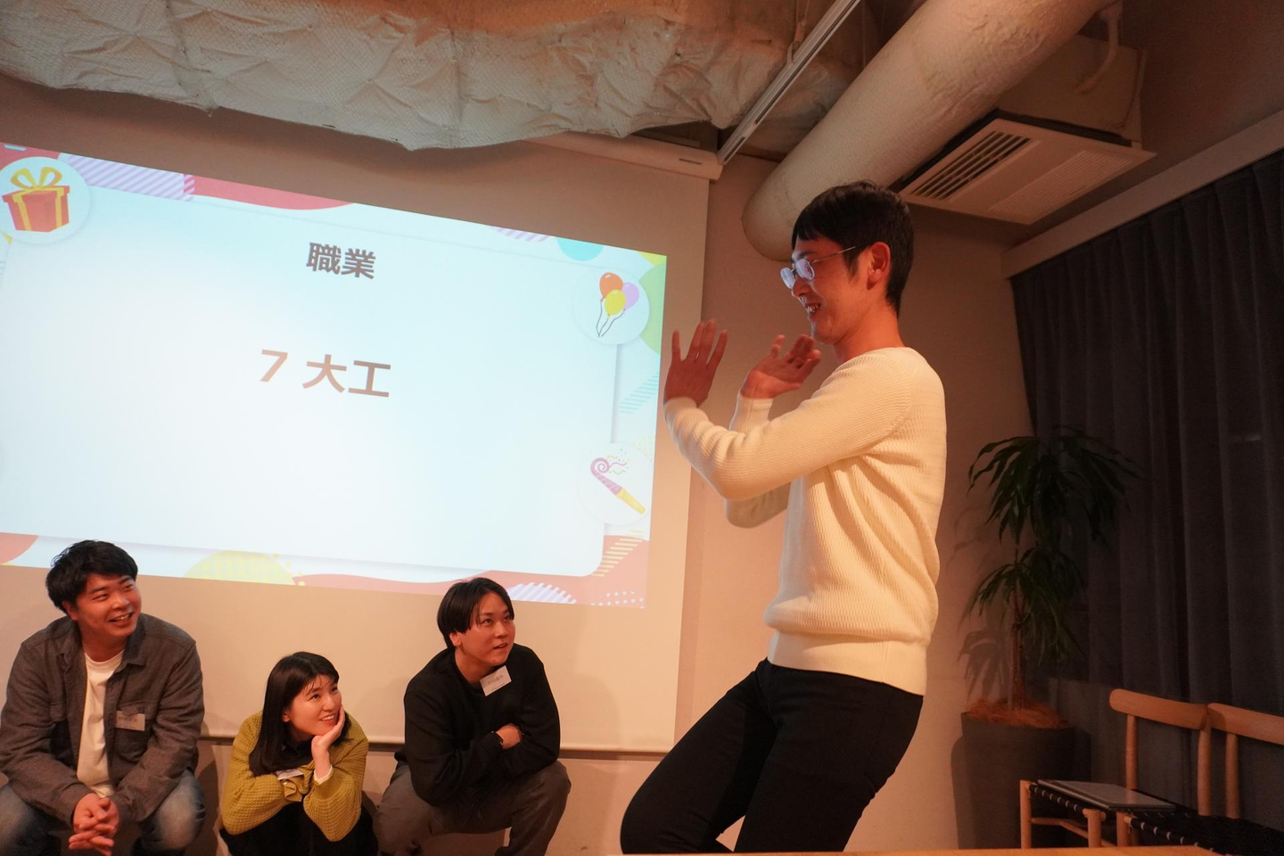 チームの代表者がジェスチャーをして、メンバーが何のお題か当てるゲームです!