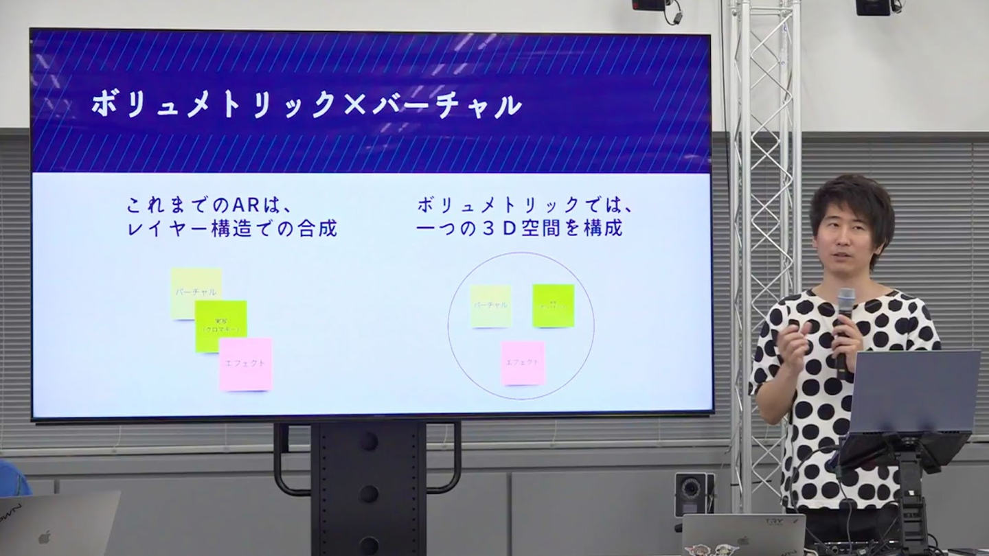 これまでのARライブは、バーチャル、実写、エフェクトなどいくつかの映像を重ねていくような形でした。そのためできる表現やパフォーマンスが制限されたり、スタジオの物理的な制約におよってカメラワークが制限されるなど、多くの課題を抱えていました。