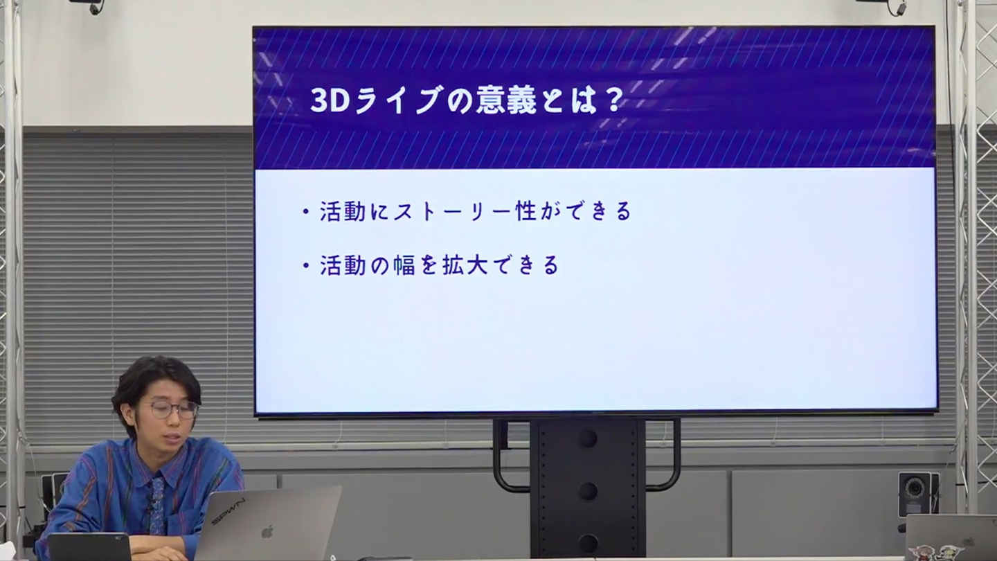 私は5年ほどVTuberの3Dライブに携わってきましたが、主に2つの意義があると思います。「活動にストーリー性ができる」「活動の幅を拡大できる」という2点です。