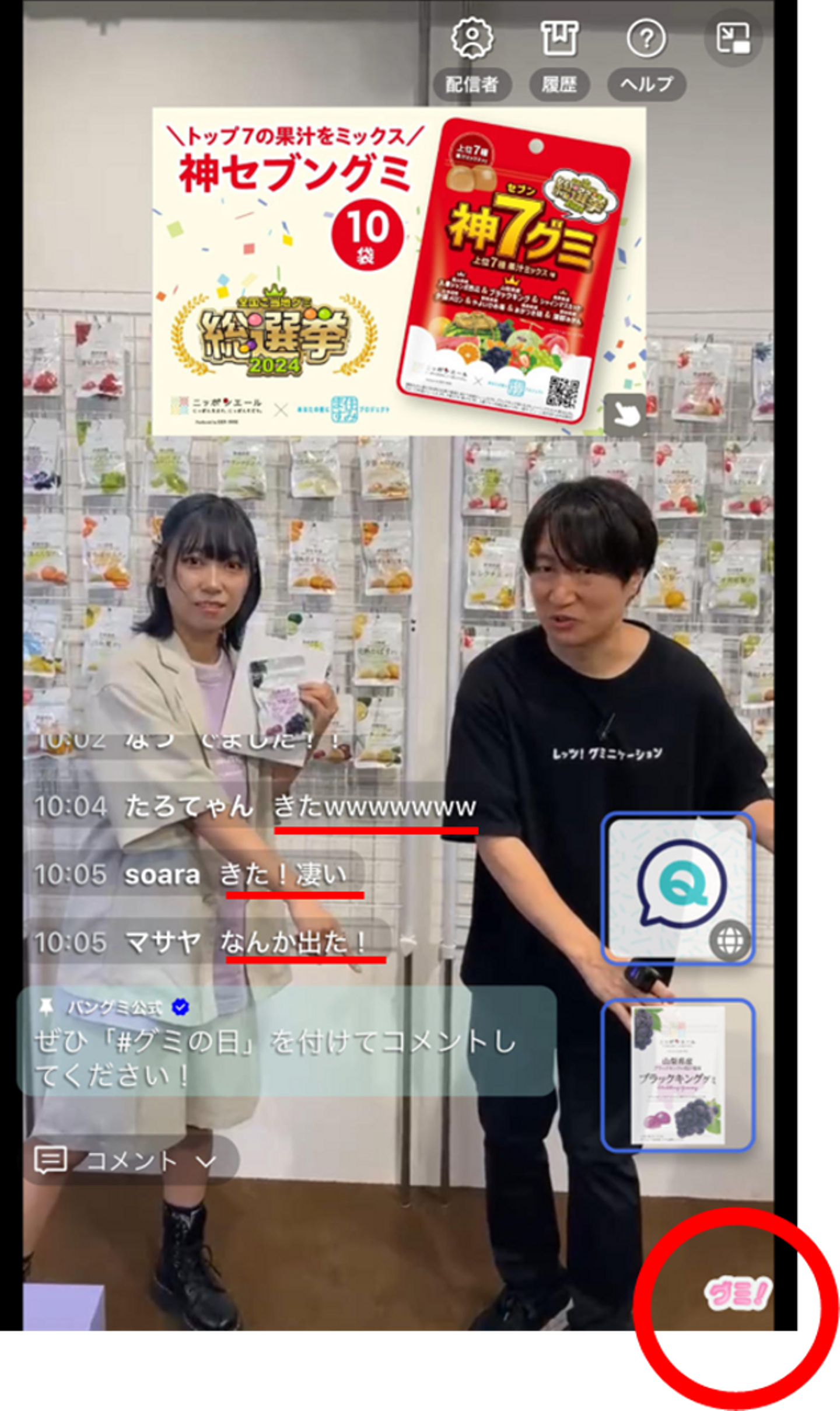 9月3日のグミの日にTig Liveを活用したライブコマースを原宿の新聖地「ハラカド」の”Steam Studio”から配信しました。