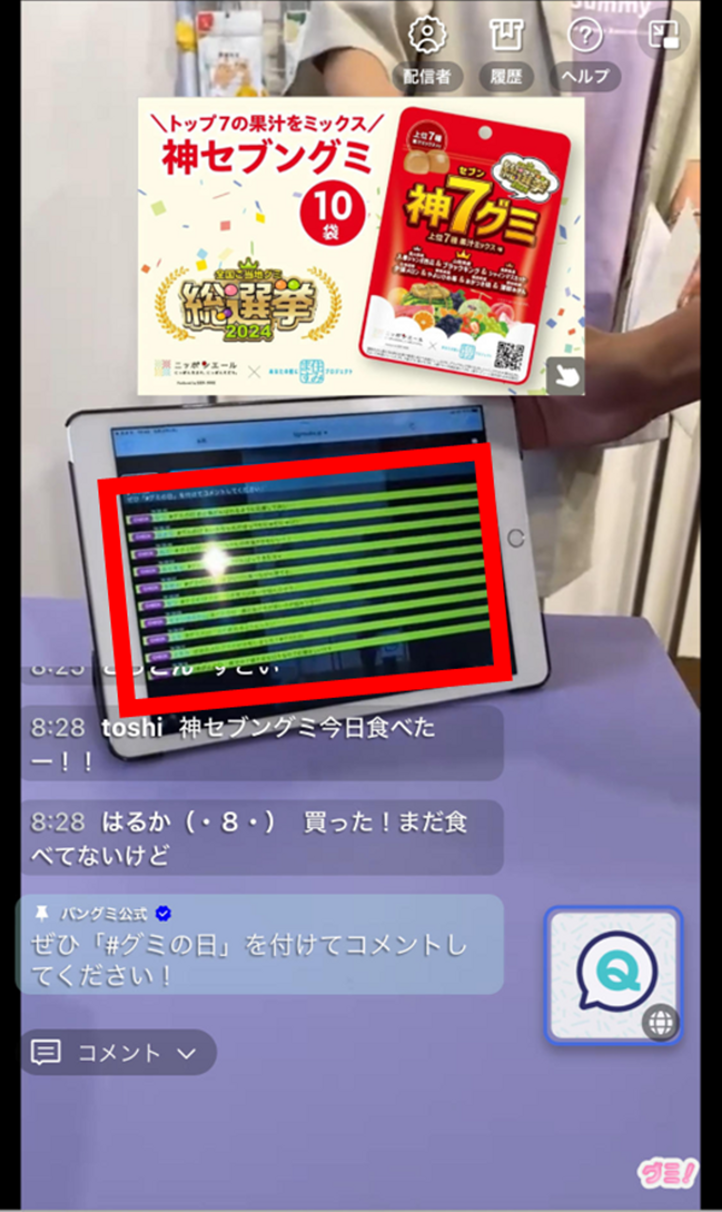 コマーサーの手元のスマホやディレクター側で、取り上げたいコメントをピックアップして、確認することができます。
