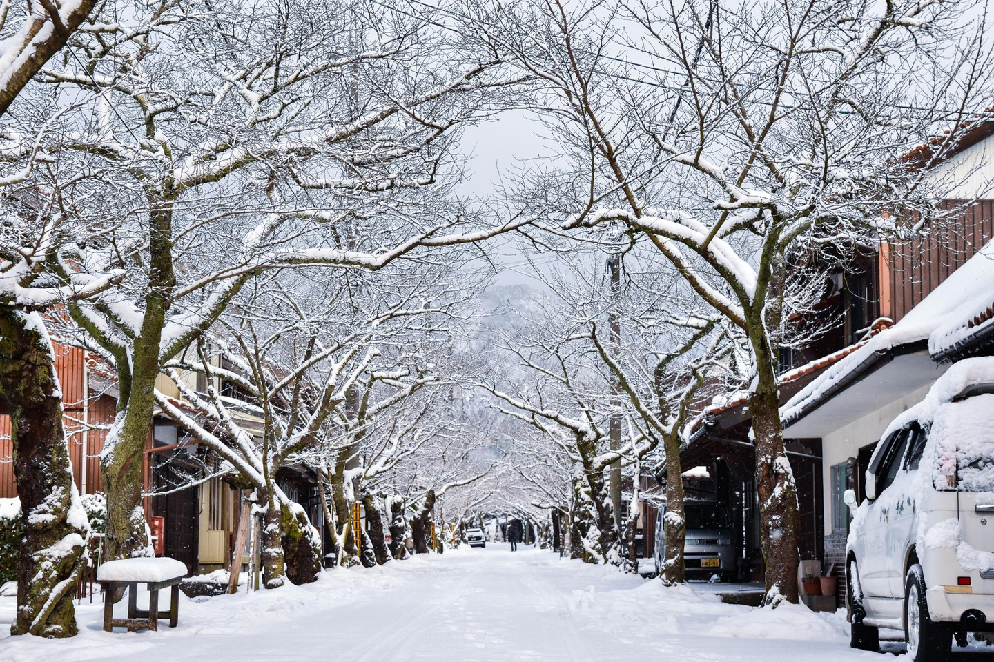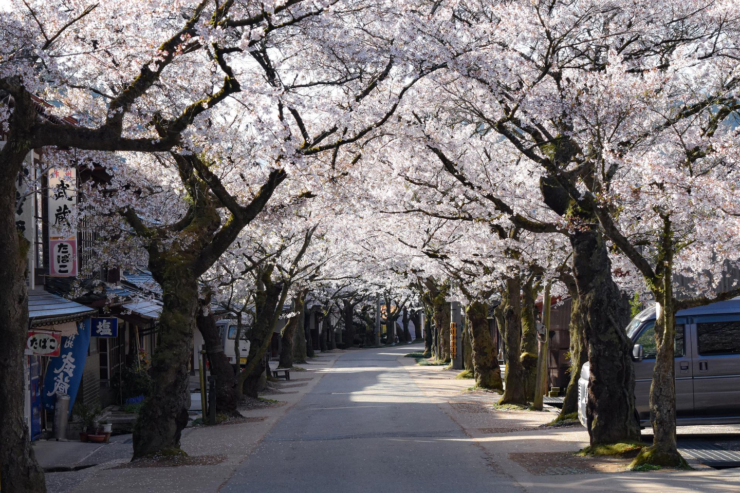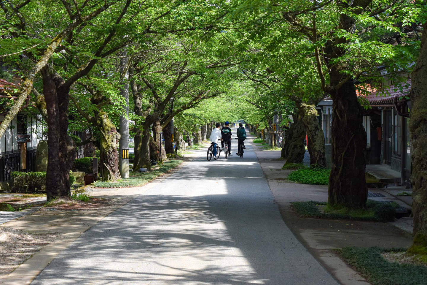 新庄村のメインストリート「がいせん桜通り」沿いには