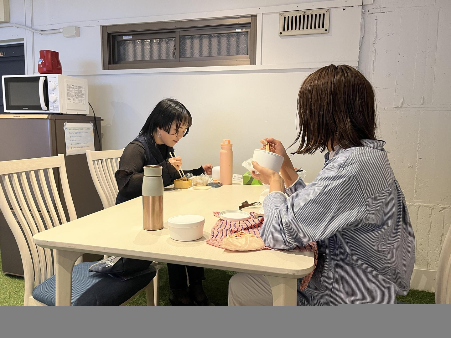 社内や屋上でお弁当を食べたり