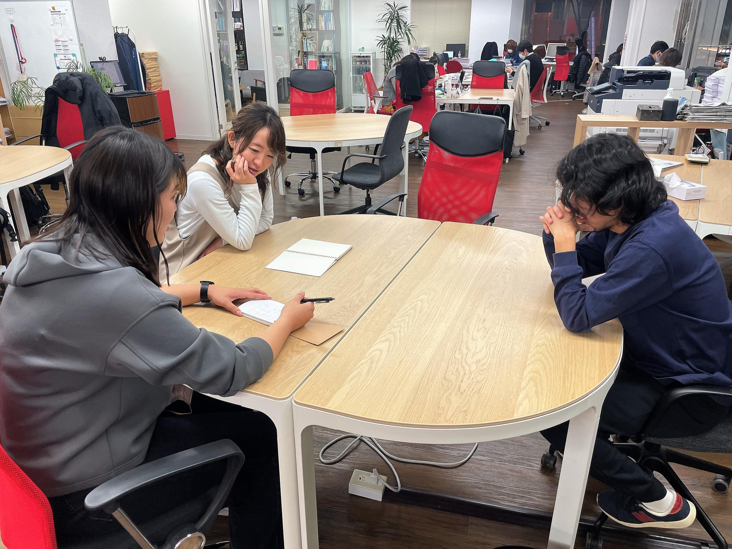 正直、チームメンバーとの打ち合わせ時間は雑談している時間の方が長いのでは?と思います。必要なことはもちろん進めますが、そのあとに何気ない会話をしています。そういった時間があるからお互いの人となりや考えがわかり合えているのだと思うんです。