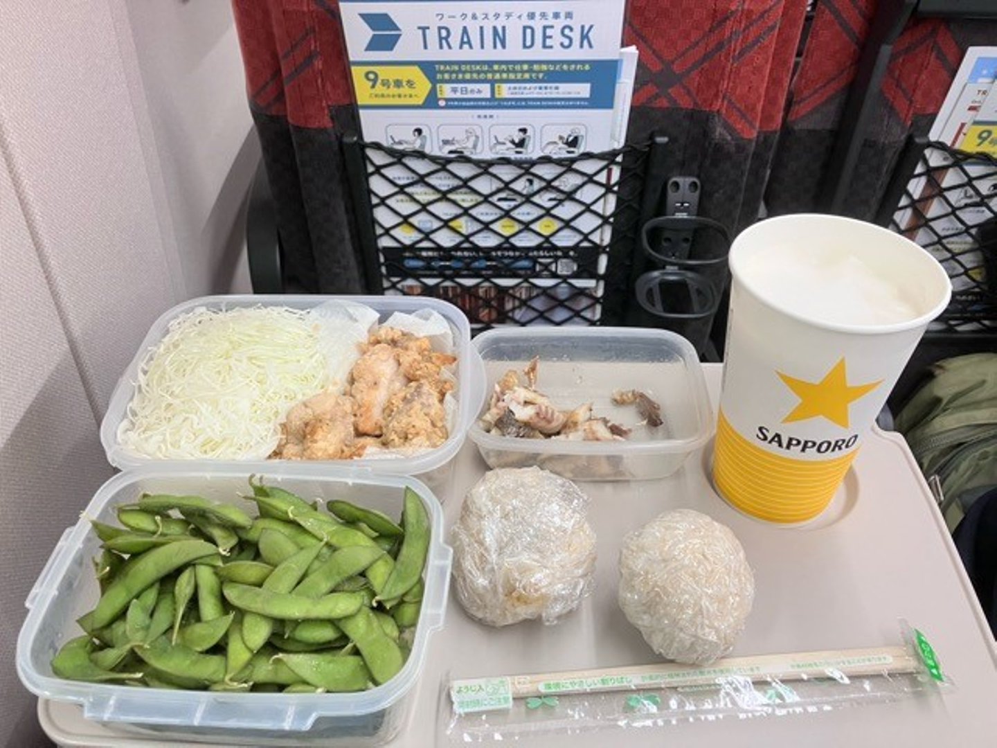 新幹線移動時のお弁当。というよりビールのおつまみですね。当然、夜移動限定です。