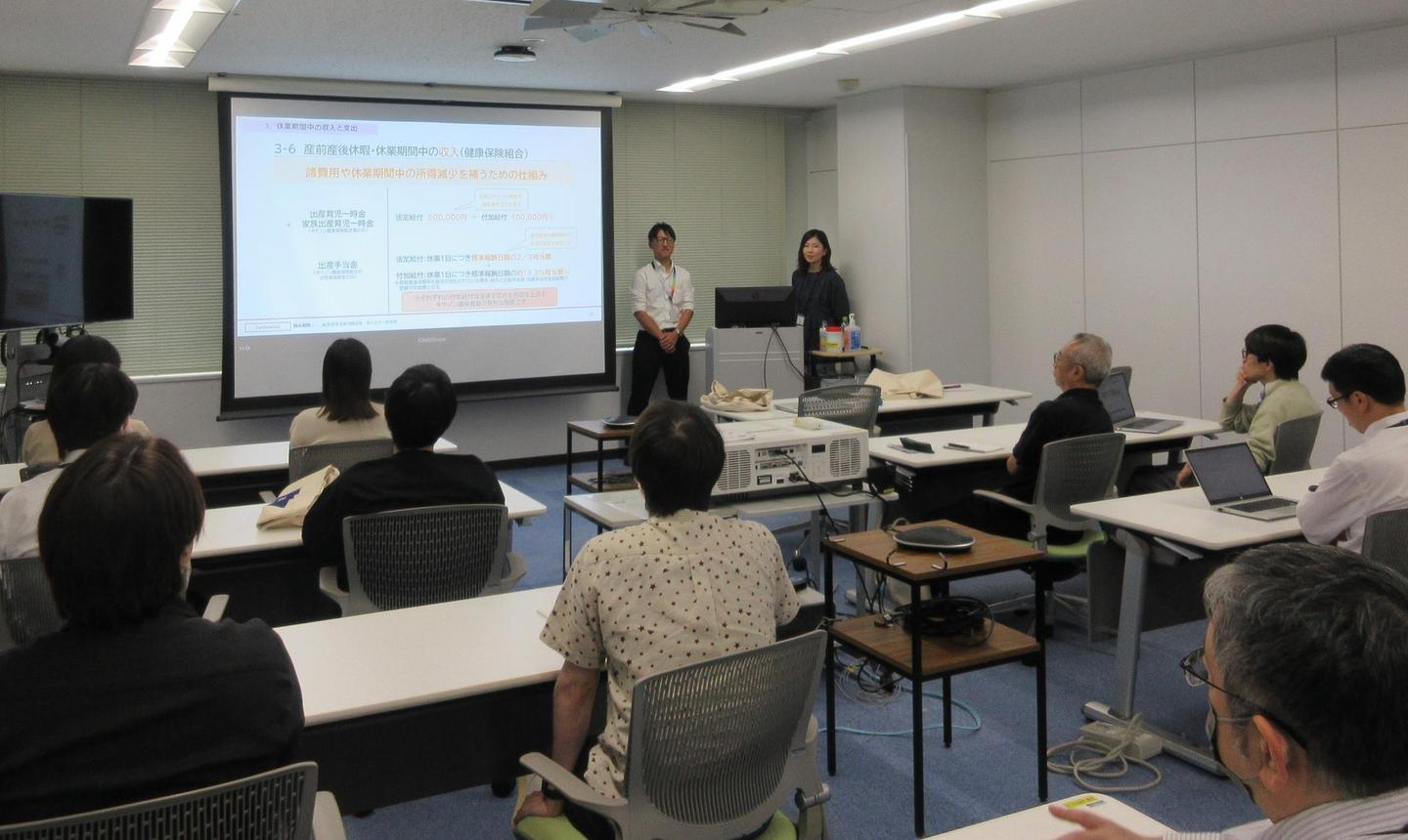 当社の男性社員における育児休業の取得率は、過去3年間で100%を維持してます。育児休業といってもほんの2~3日でしょと思うかもしれませんが、2024年の平均取得日数は105日となっています。また、9月25日(木)に社内で開催した「男性の育児参画支援セミナー」にも、多くの男性社員が参加しました。