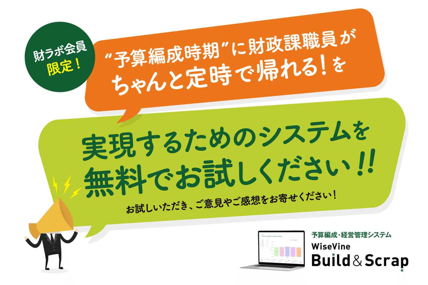 定野:財ラボが有する全国の会員ネットワークと自治体財政に関する専門的知見、そしてWiseVine社の先進的なIT技術を組み合わせ、自治体の予算編成プロセスの効率化と高度化を図ることで、財ラボが発足当初から掲げている理念でもある「将来にわたって持続可能な自治体運営をめざす」ことを目的としています。