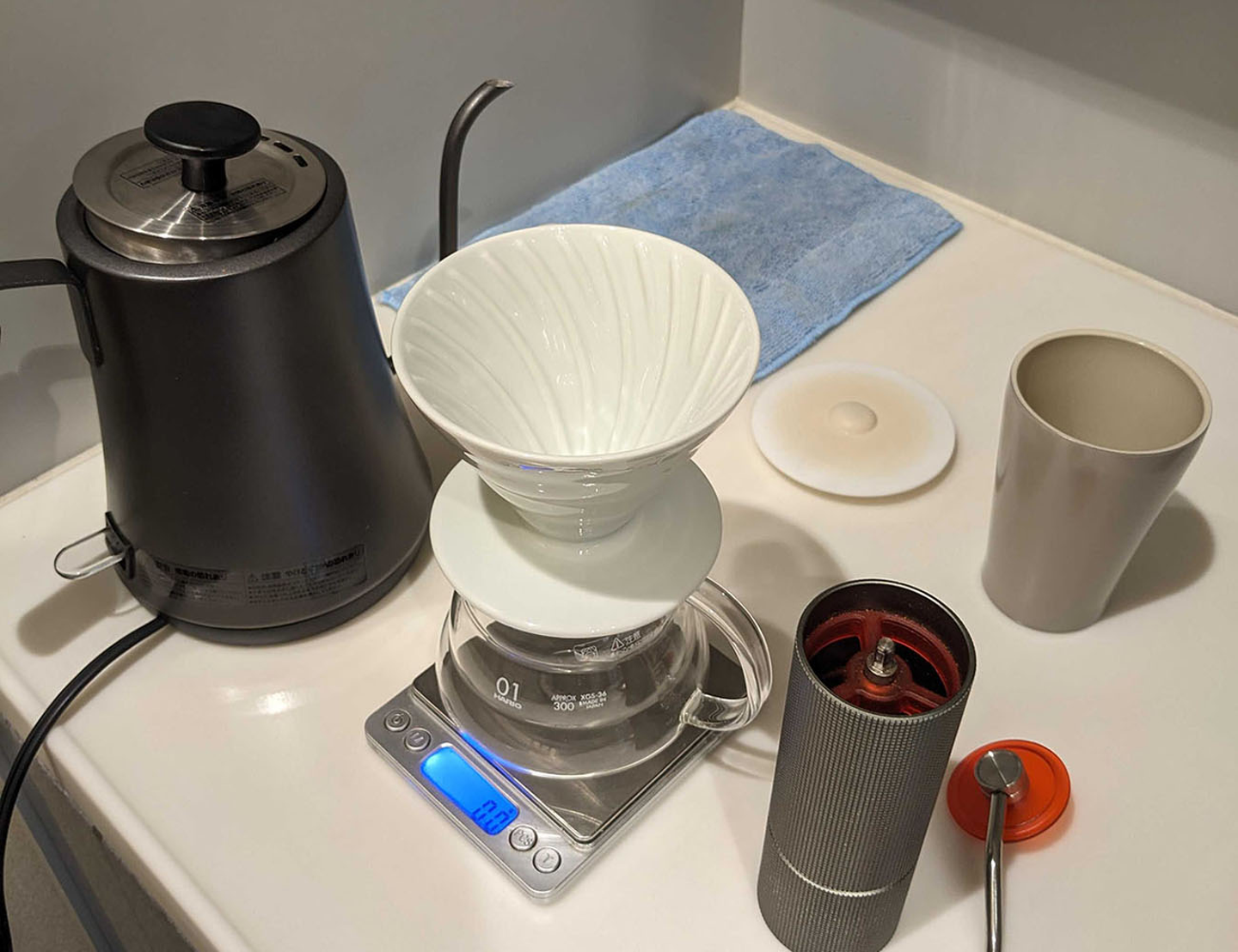 今はアサイン先の現場に出社しているんですが、そこでも美味しいコーヒーを飲みたいな〜となって。給湯室の1箇所を占拠して、朝と昼に豆を挽いて楽しんでいます(笑)