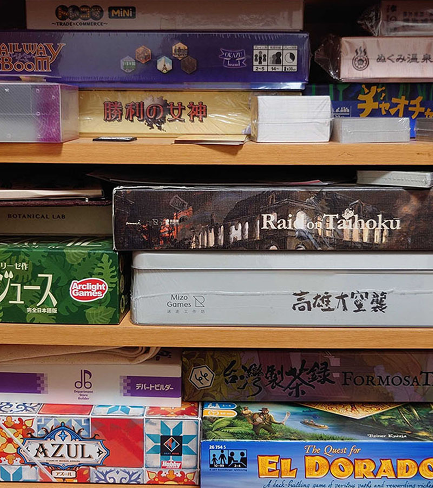 ▲吉村さん秘蔵のボドゲコレクション(ほんの一部)。そろそろ床が抜けるかもしれない…と危惧されるほどの量です。中には絶版されてプレミア価格がついているものもあるんだとか…。