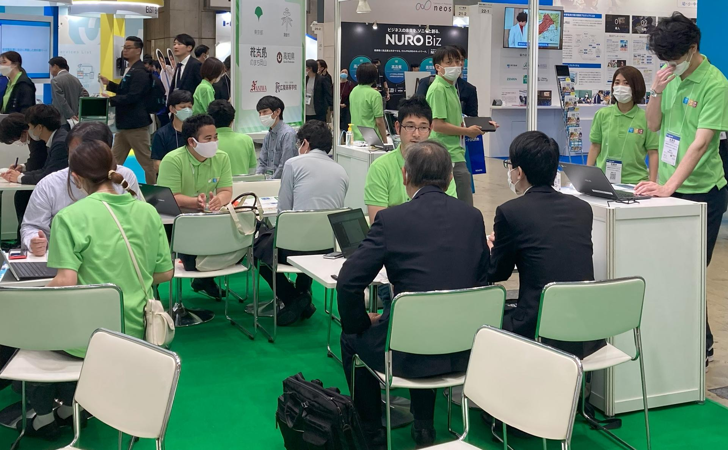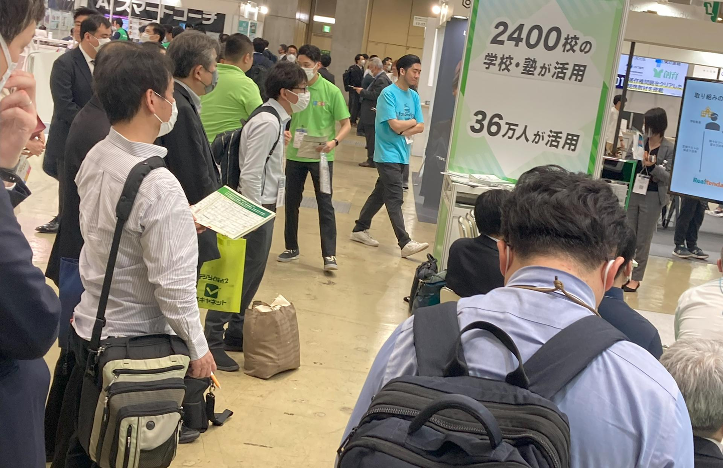 今年はブース内にミニセミナースペースを設け、毎日導入校や導入自治体の方をお招きした事例紹介ミニセミナーを開催しました。特に、経産省の「未来の教室」で全国の自治体初のeポータルを通じた学習ログの利活用に関する事例紹介セミナーは、業界で注目されているテーマでもあることからミニセミナースペースに参加者が収まらない事態も発生。県教委の方が直々に成果についてお話してくださる内容に、通りがかりの方も思わず足を止めて聞き入っていました。