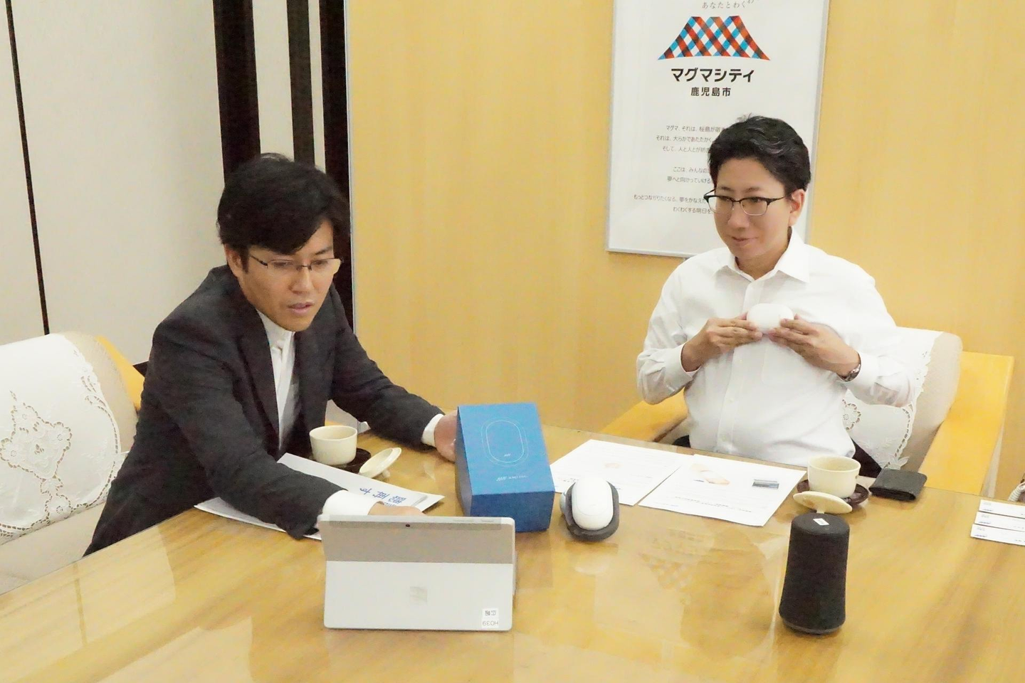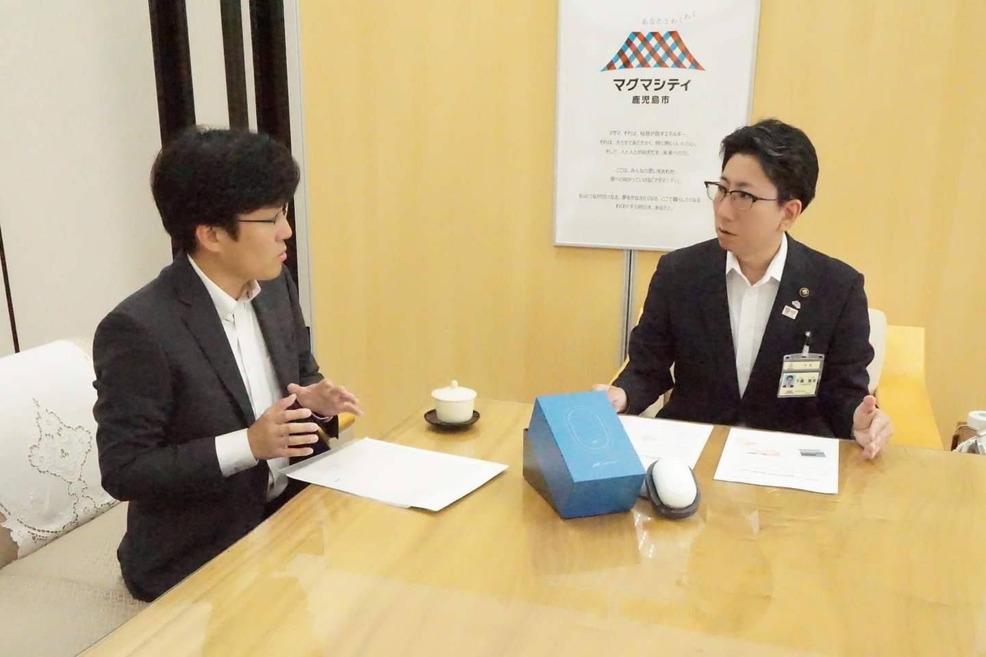 鹿児島市役所へは当社代表取締役CEOの小川と広報チームで訪問させていただきました。