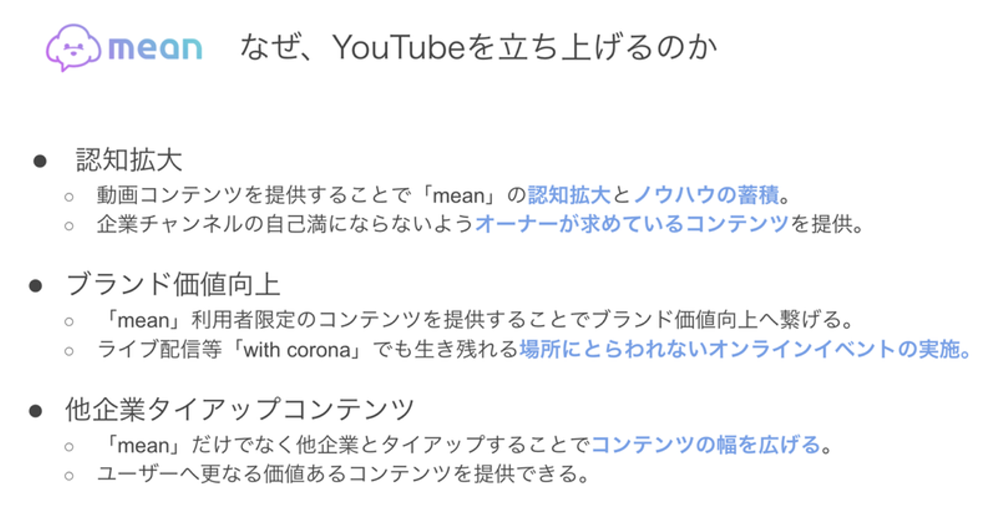 この状況下で「今」できることを考えた結果、meanのオウンドメディアを開設することで他社との提携はもちろん、ユーザーとオンラインでコミュニケーションが取れるのではと考え立ち上げに至りました。
