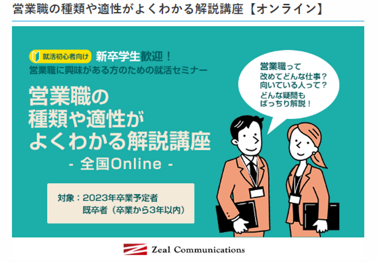 ◆営業職の種類や適性がよくわかる解説講座【オンライン】
