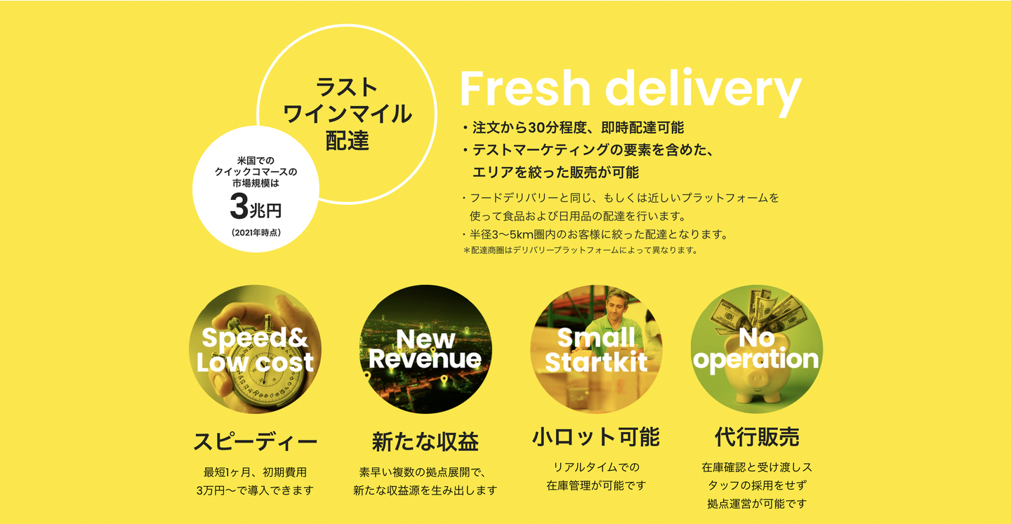 特にフードデリバリー企業だからこその商品配達スピードが強みで、約30分で商品を届けることができます。浅草施設でサービスをローンチして約1ヶ月になりますが、冷凍食品を中心に全国各地からご利用いただいています。少額で冷凍冷蔵庫、ドライ商品のストレージを借りることができ利用していただきやすいので、数施設分契約されるケースもあります。さらに、弊社のシステムを利用して在庫が把握できるので、管理のしやすさも魅力ですね。