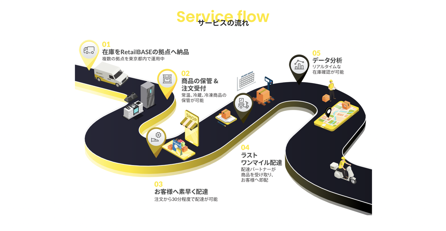 「RetailBASE」というクラウドリテールサービスの立ち上げを行っています。クラウドリテールはいわゆる「貸し倉庫」としての機能を持っています。海外では多い形態なのですが、クライアントの商品を保管する場所を確保して流通を担います。商品さえ納品していただければ、受注から発送までは全て弊社が請け負うので、クライアントの負担が少ないのが特徴です。主に、商品の販路を持たない、または販路を増やしたいメーカー様が利用される見込みです。