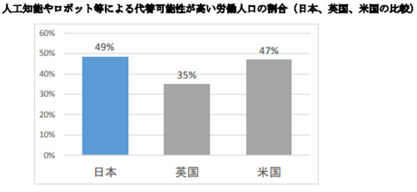 (2015/12/2 株式会社野村総合研究所「日本の労働人口の 49%が人工知能やロボット等で代替可能に」より)
