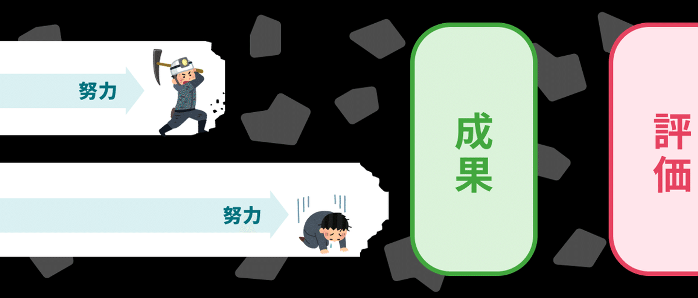 - 「努力しているのに評価されない」は間違っているが、「成果が出ているのに評価されない」は、そこにタイムラグがあるだけ