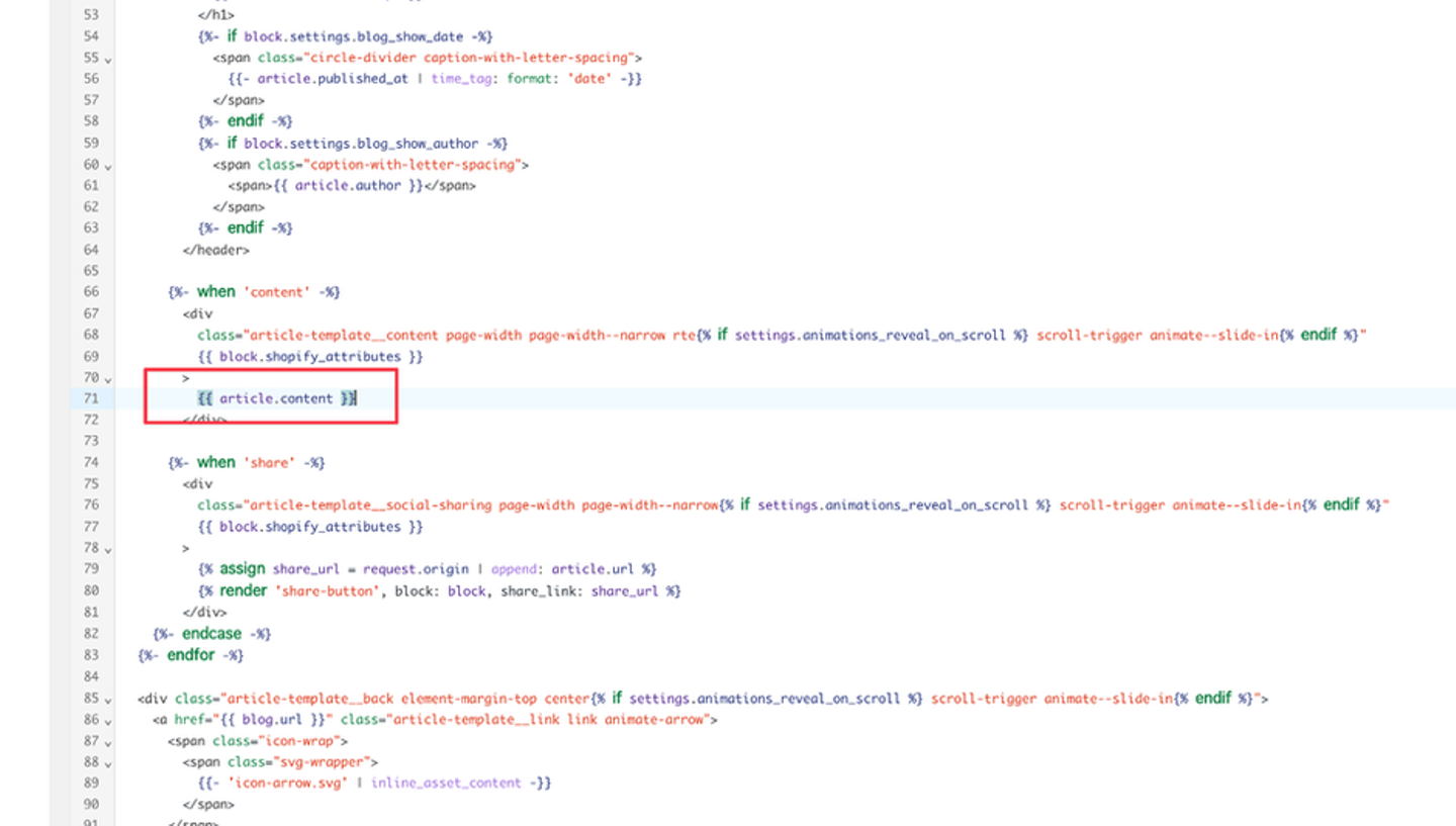 main-article.liquidの「article.content」で出力している部分が見つかったらあと少しです。