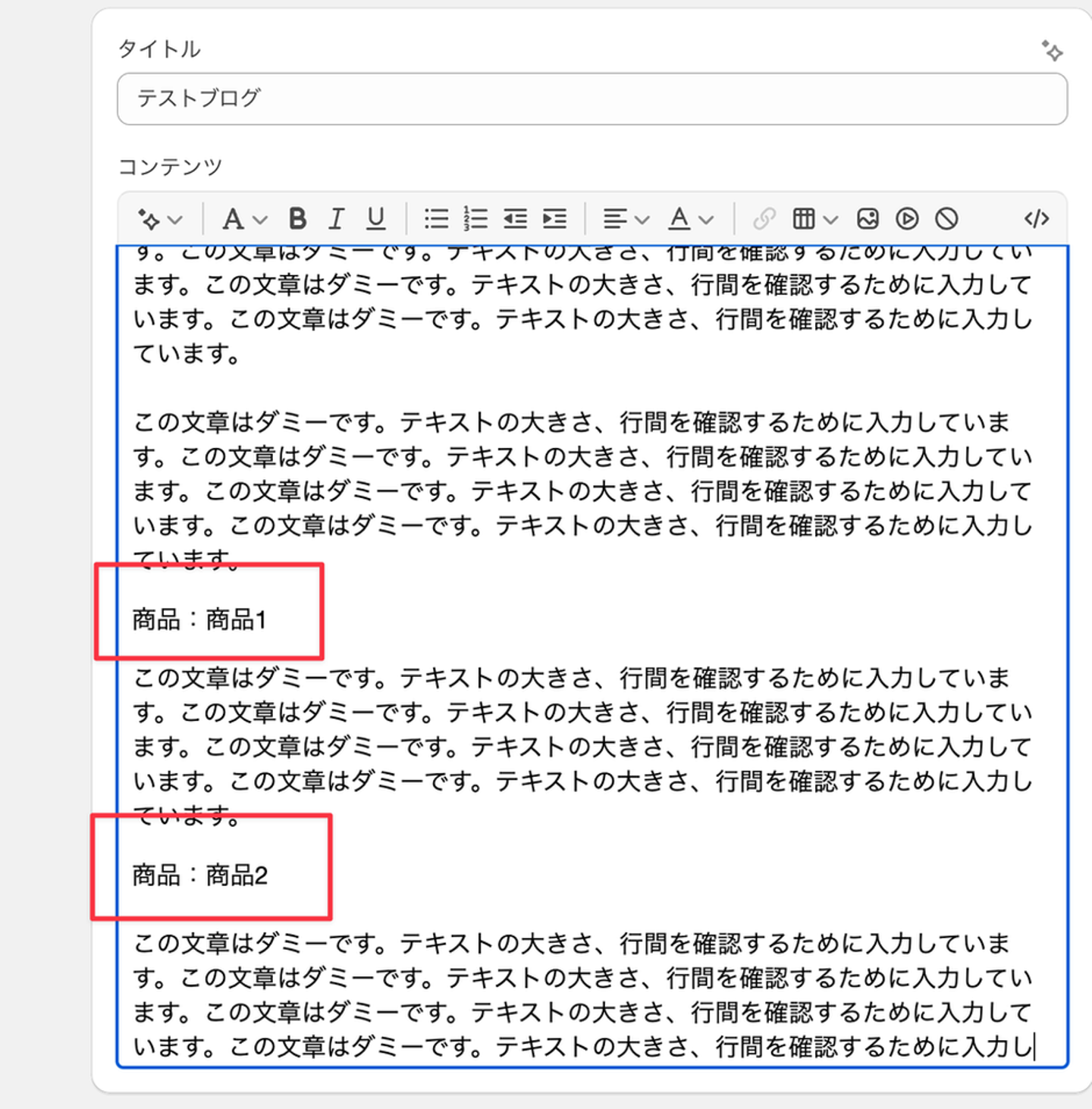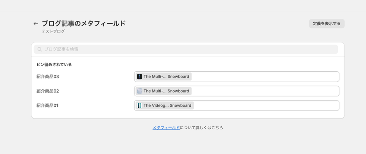 ブログ記事にて表示を確認してみましょう!ブログ記事メタフィールドに商品を設定する