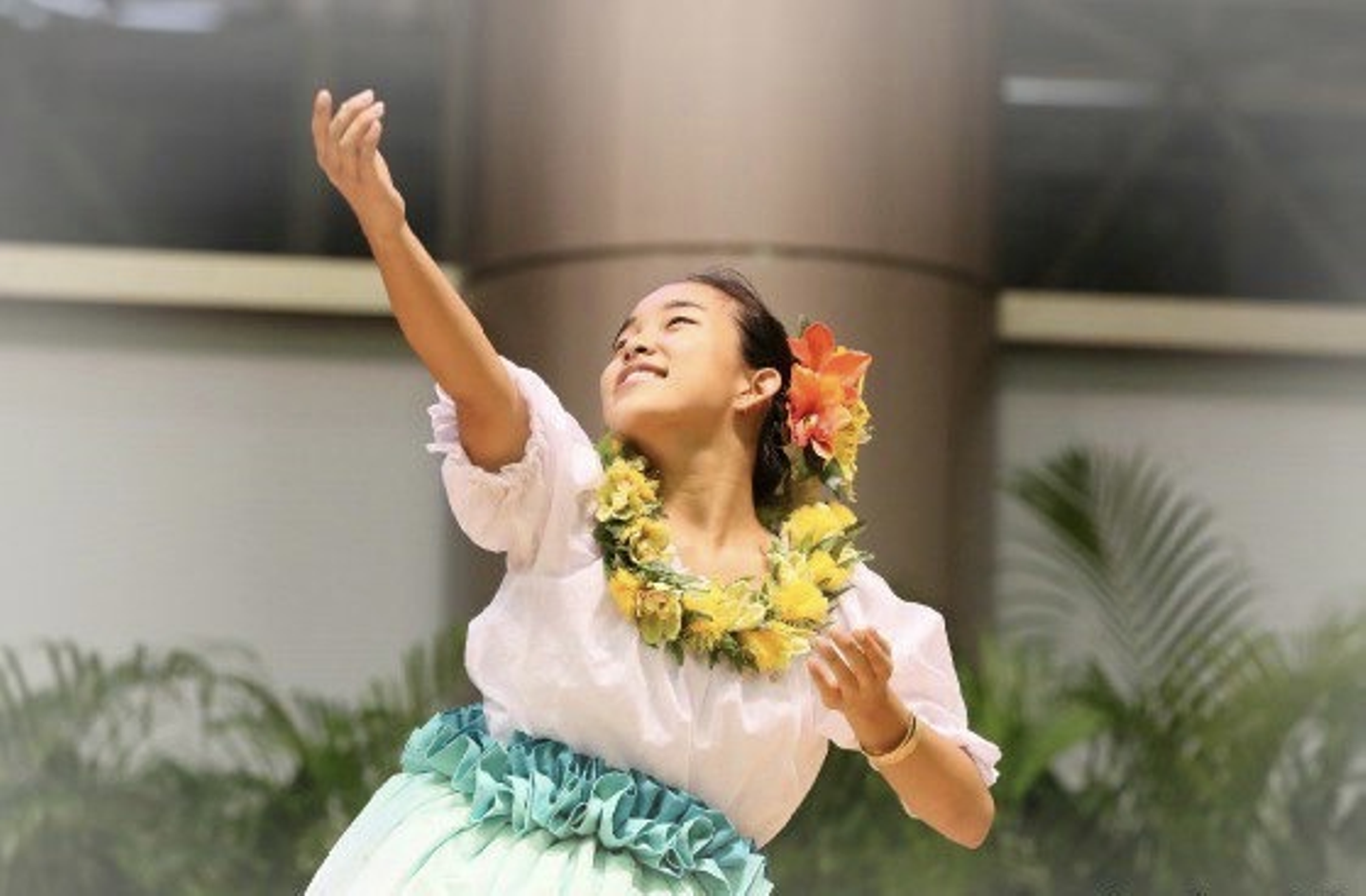 2歳半からインターナショナルスクールに入りました。とても好奇心が強い子どもで、いつも「なんで?なんで?」と聞いていました(笑)。小学校に入りフラダンスに出会います。土日は12時間くらい練習したり、現地アメリカに行ってトレーニングをしたりもしました。一番嬉しかったのは、見た人が「本当に心動かされました」、「私も明日から頑張れそうな気がします」などと言ってくれること。その言葉は何にも代え難い喜びでした。