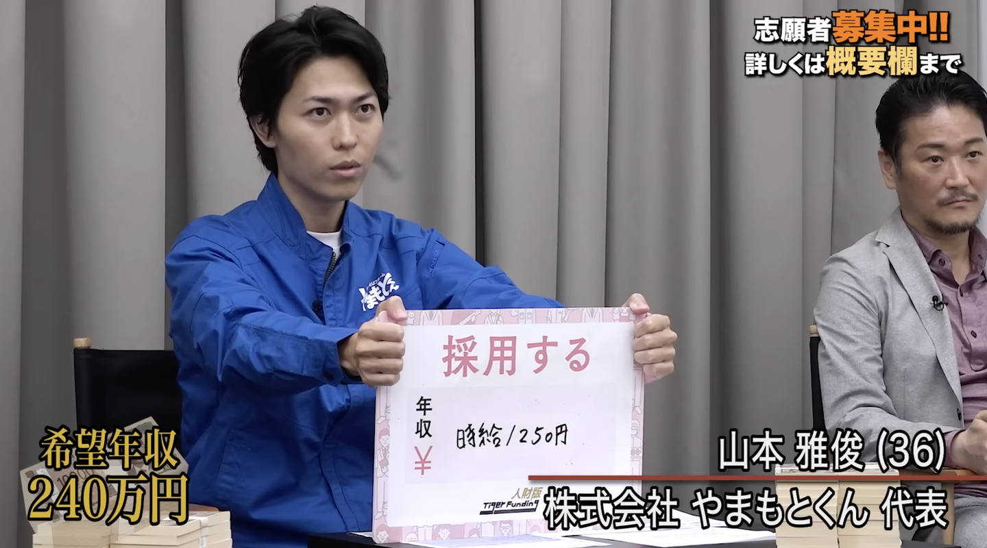 しかし、4人の虎の最終決断は、いずれも「採用しない」でした。