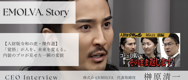 こんにちは、株式会社EMOLVAの榊󠄀原です。私が主宰を務める「人財版令和の虎」には、日々、自らの人生を切り拓こうとする熱意ある志願者が集まります。その中でも、特に私の記憶に深く刻まれているのが、46歳の内装工、老田博幸さんの挑戦です。あの回は、まさに「人財版」の真髄が凝縮されていました。限られた収録時間の中で、虎たちとの対話を通じて一人の大人の目が輝きを取り戻し、その立ち振る舞いまでもが変わっていく。そんな「人が変わる瞬間」を、私の視点から振り返ってみたいと思います。(1) 46歳、内装のプロが求めた「1ランク上の未来」老田博幸さん。46歳。建設会社で22年にわたり内装施工管理の第一線...