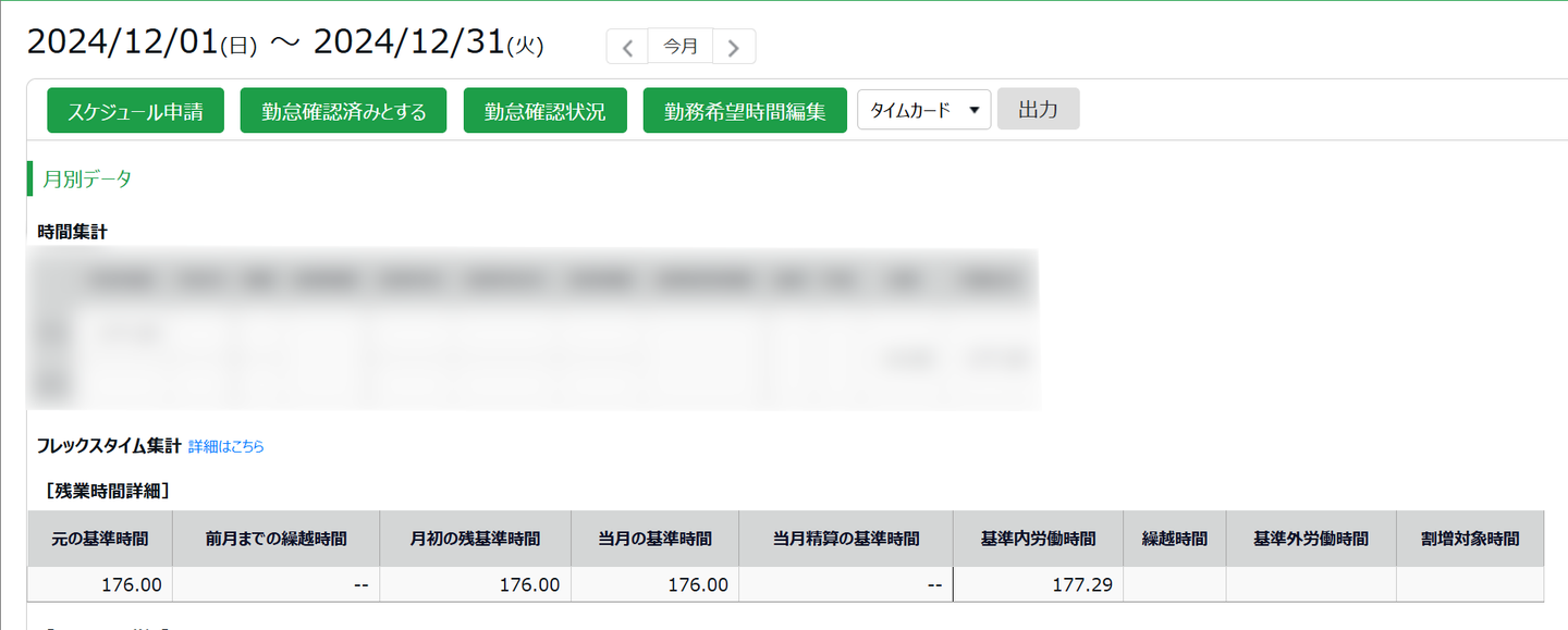 元の基準時間が「176.00」つまり1か月の規定時間が176時間に対して、