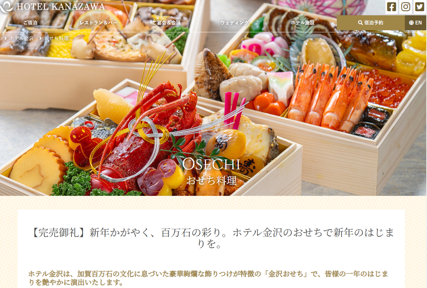 また、昨年好評でしたホテル金沢のおせち料理についても、今年も実施しました。